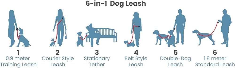 6 في استخدام واحد: يتحول مقود الكلاب الحائز على جوائز والأكثر مبيعًا إلى 6 أنماط مختلفة مع تعديل حلقة تسلق بسيطة: (1) حول الخصر، (2) نمط البريد السريع فوق الكتف، (3) مقود مزدوج للكلاب، (4) حبل متعدد الاستخدامات للمساعدة في ربط كلبك بأي شيء، (5) مقود بطول 6 أقدام، و(6) مقود تدريب بطول 3 أقدام