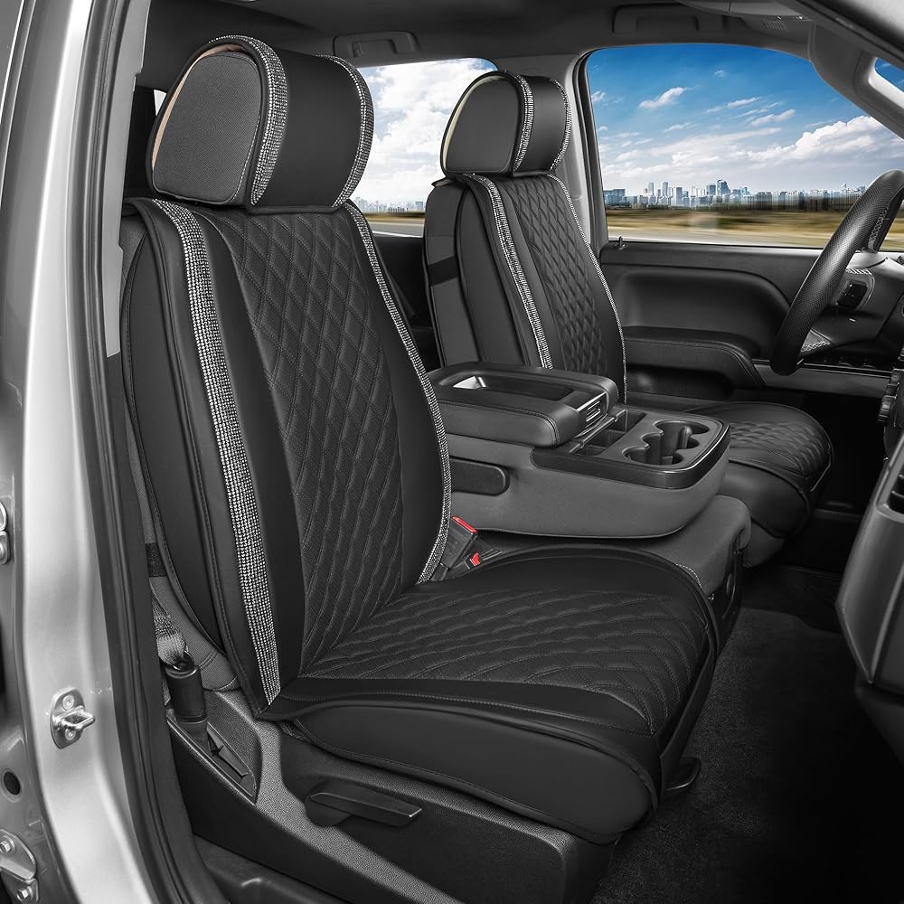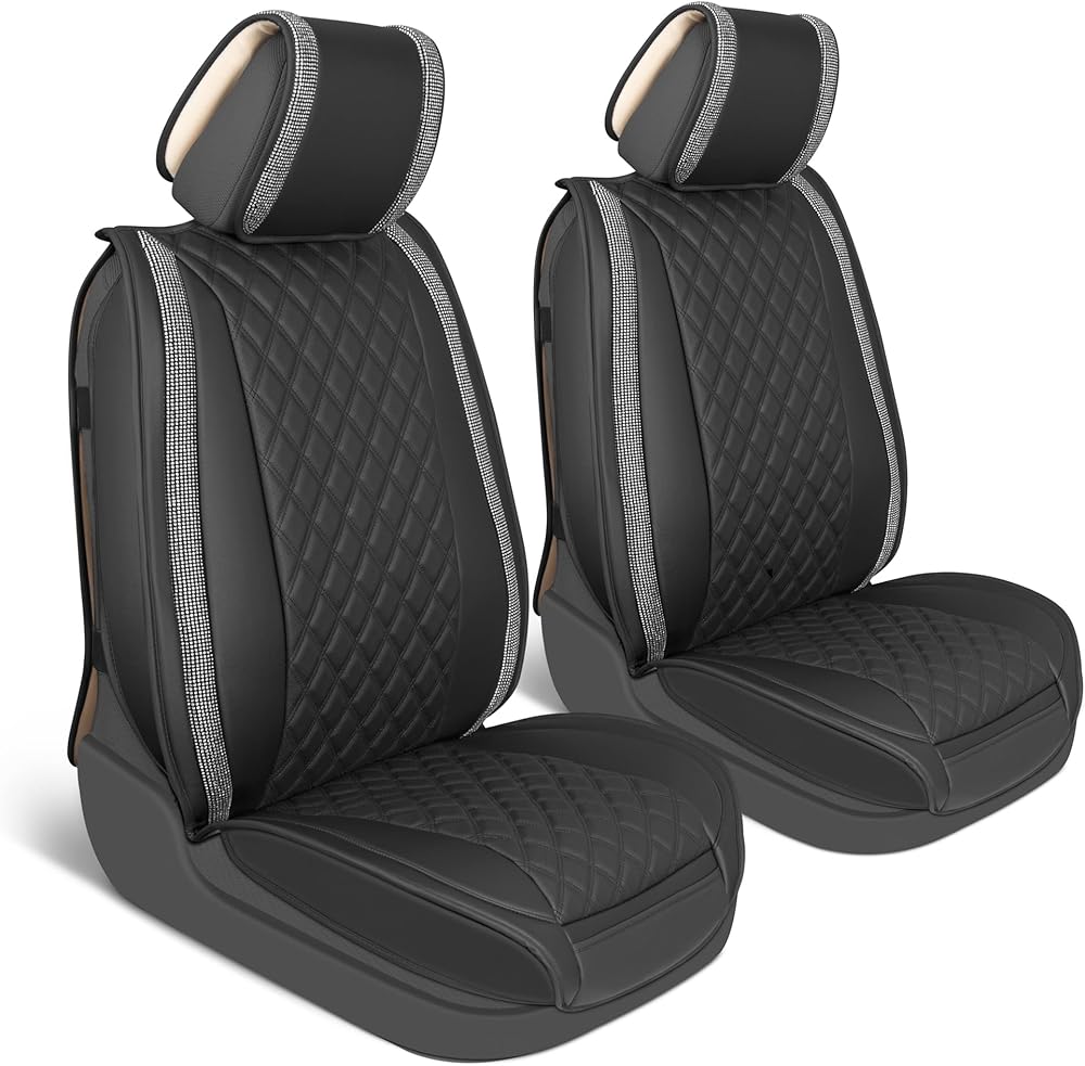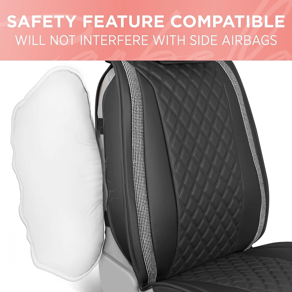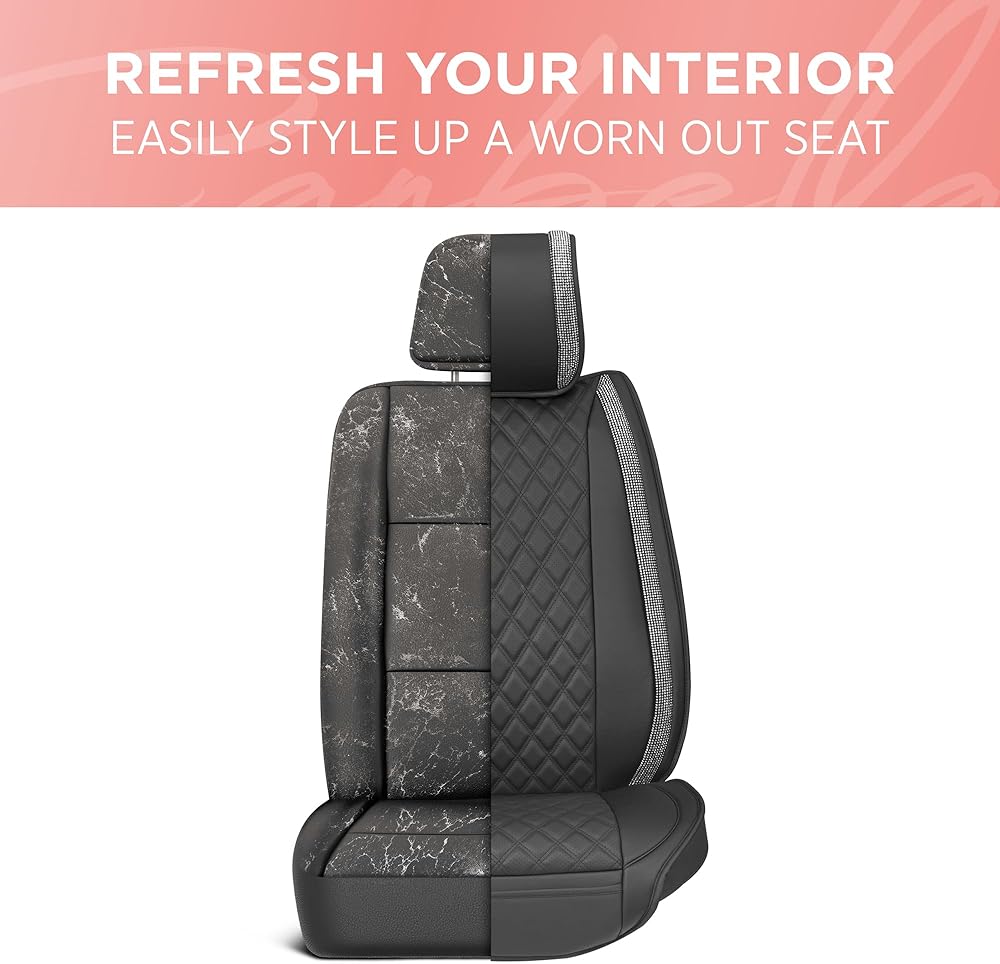 جلد PU فاخر مع كريستالات لامعة: مصنوعة من جلد PU عالي الجودة مزين بكريستالات لامعة، أغطية المقاعد هذه تضفي الأناقة والمتانة للحصول على لمسة دائمة من الفخامة.