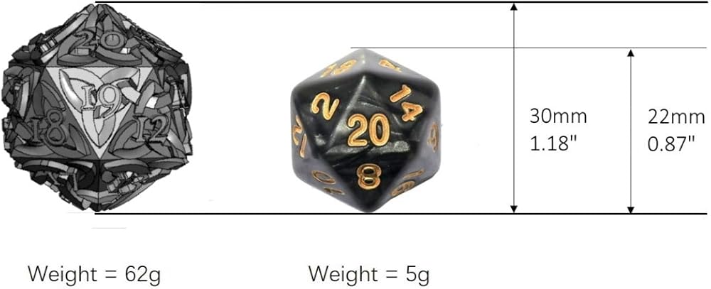 عداد حياة النرد الذي لا نهاية له D20 النرد Spindown معدن صلب كبير جدًا وثقيل جدًا لـ MTG Magic The Gathering EDH Commander العد التنازلي للعداد المعدني