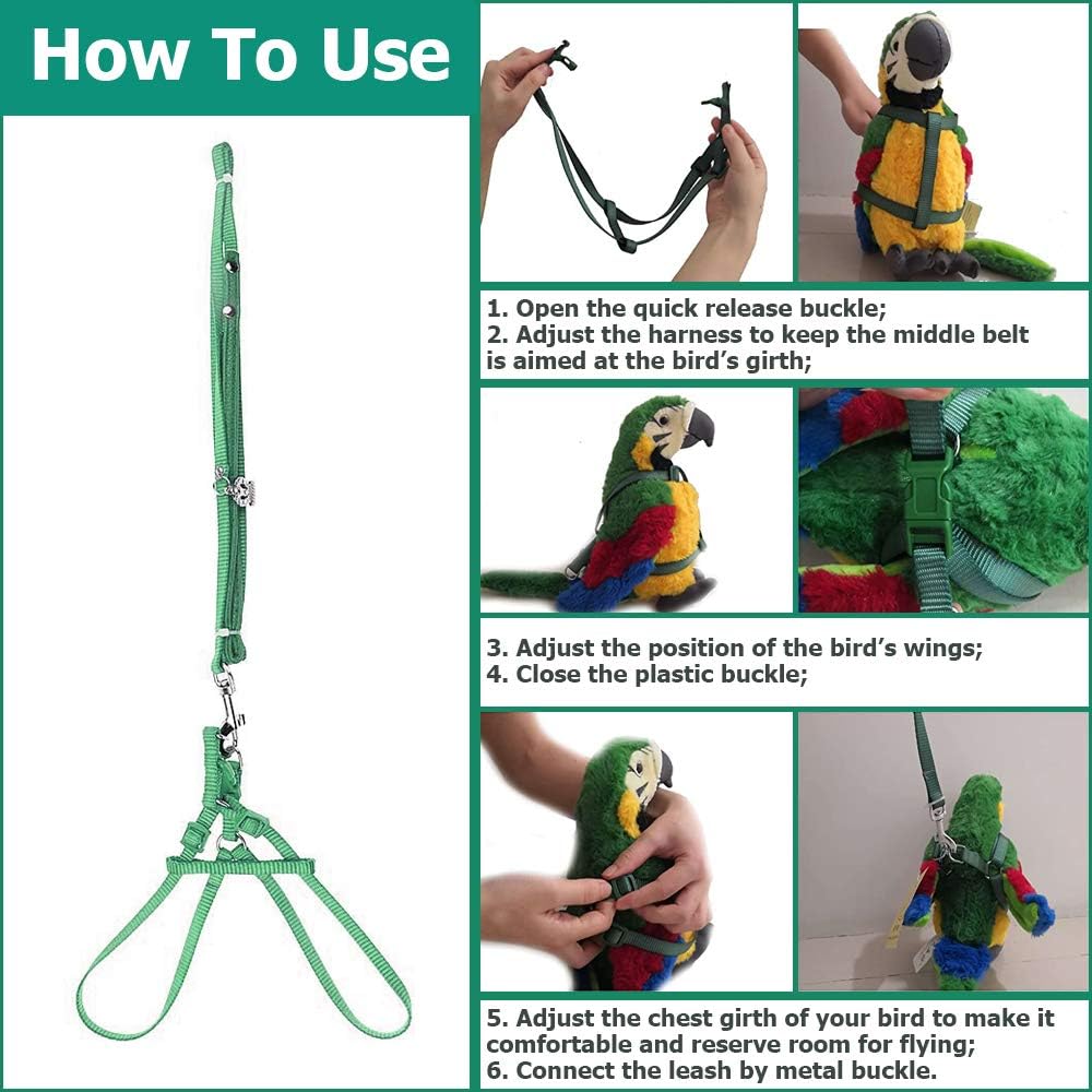 • مقود الببغاء هذا ضروري لأصحاب الطيور الذين يستمتعون بإخراج طيورهم، ويساعد على بناء علاقة أكثر حميمية مع طيورك المحبوبة.