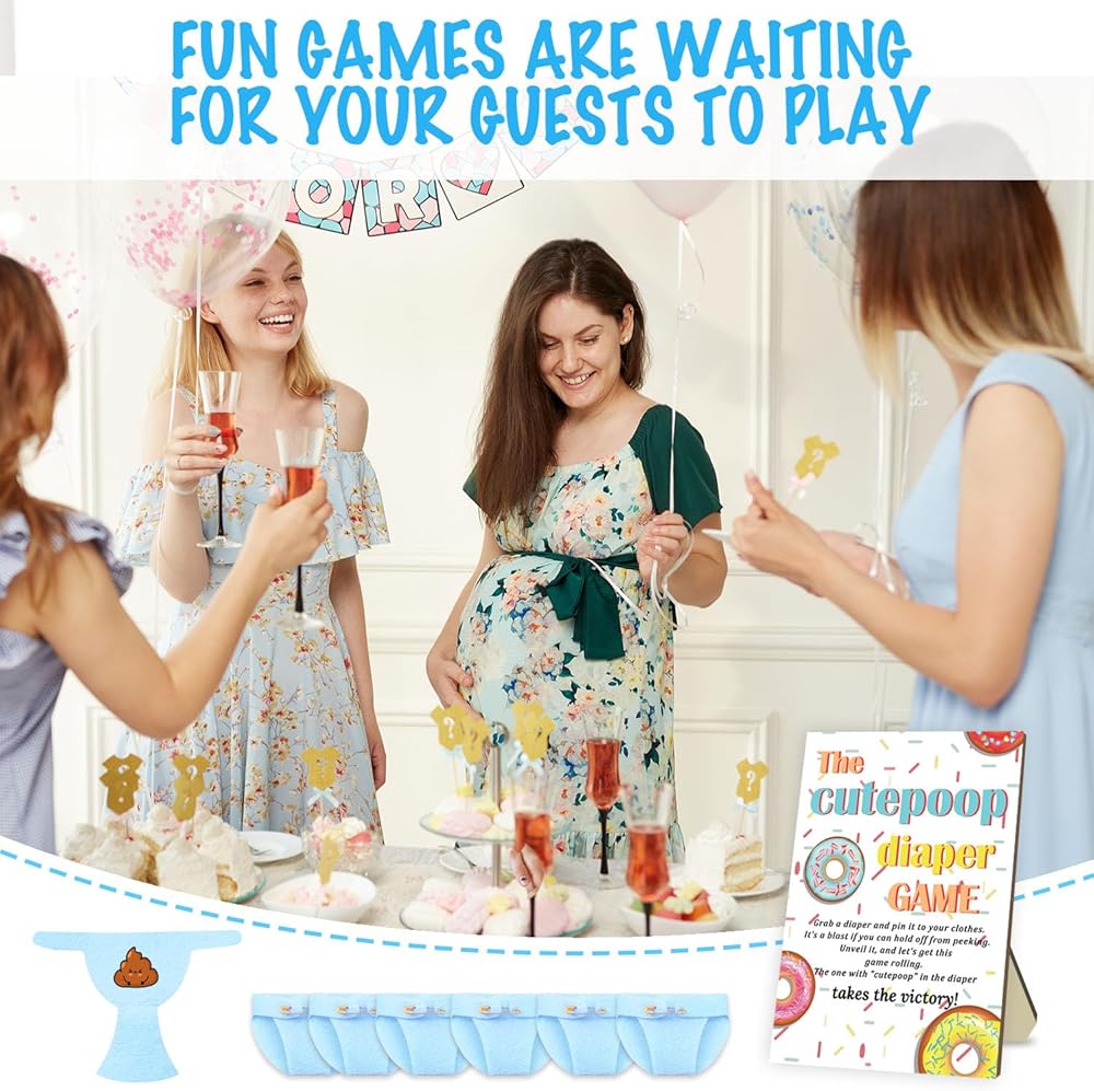 مجموعة ألعاب استحمام الطفل المضحكة: تتضمن هذه المجموعة لافتة ألعاب استحمام خشبية للأطفال بقياس 12.7 × 17.78 سم، و50 حفاضة من اللباد الناعم، و104 دبابيس معدنية. إنه مثالي لحفلة استحمام طفلك.