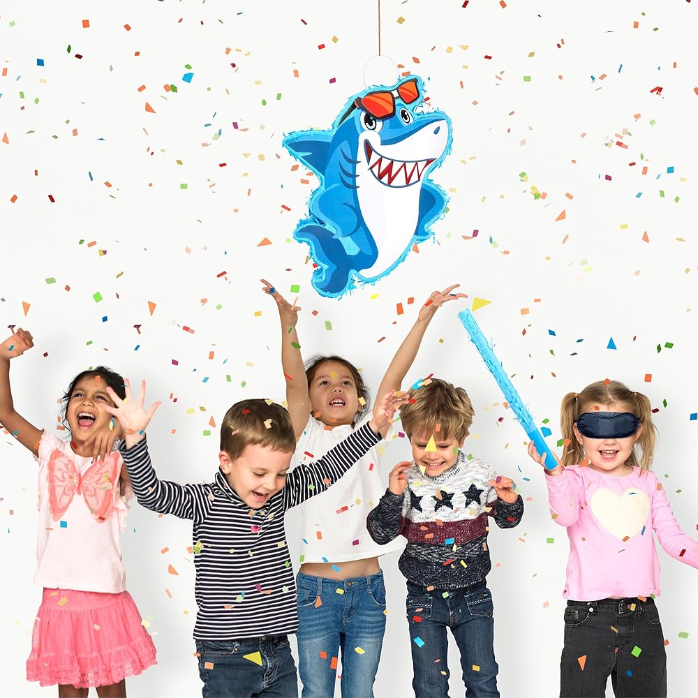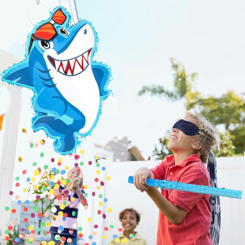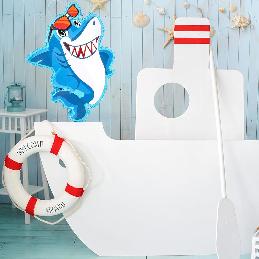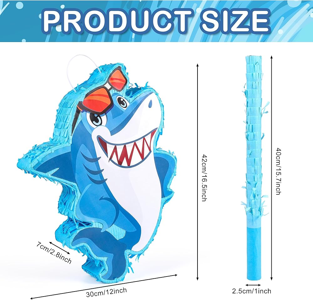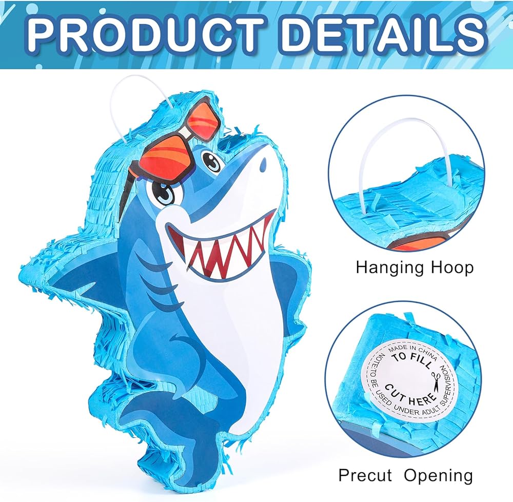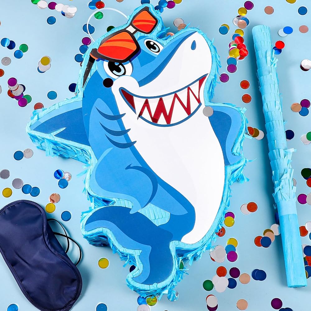 بينياتا القرش للأطفال: أبهر ضيوف حفلتك مع بينياتا القرش الأزرق! ألوانها النابضة بالحياة، وشكل القرش النابض بالحياة مع زخرفة النظارات تخلق تأثيرًا بصريًا حقيقيًا - المظهر العام رائع، ومختلف عن الآخرين، وممتع ولافت للنظر، ورائع للحفلات التي تحمل طابع البحر/سمك القرش.