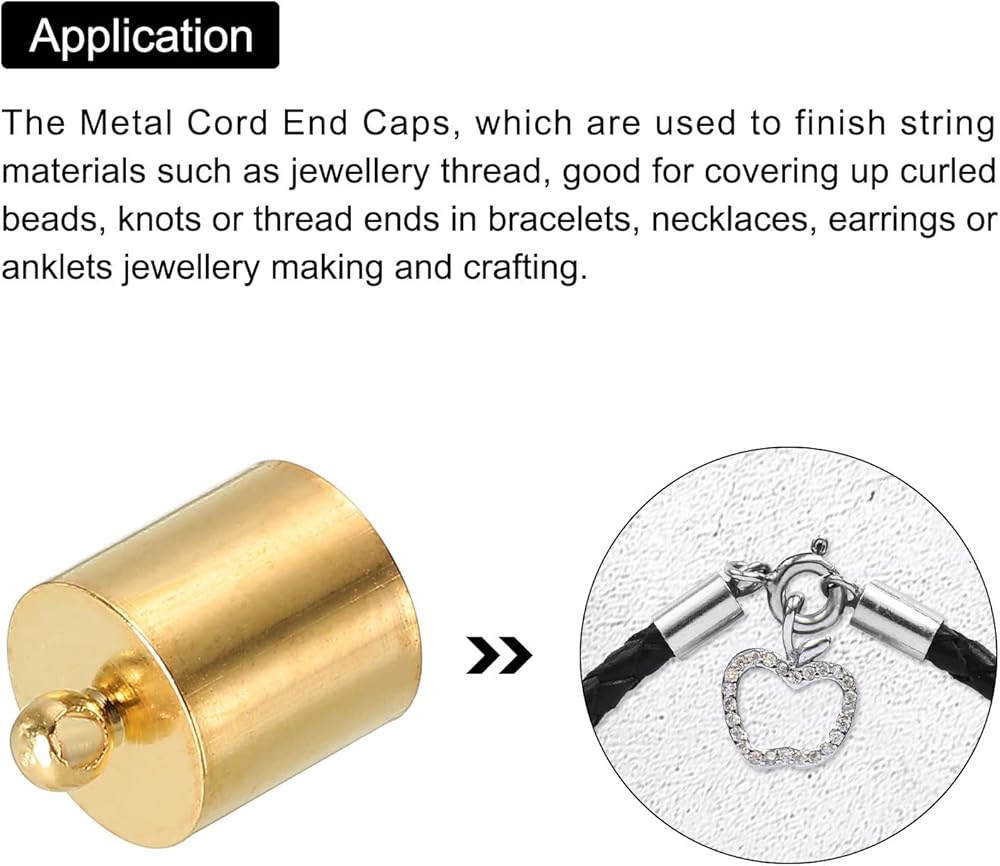 تُستخدم أغطية نهاية الحبل المعدني لإنهاء المواد الخيطية مثل خيوط المجوهرات، وهي جيدة لتغطية الخرز المجعد أو العقد أو أطراف الخيوط في الأساور أو القلائد أو الأقراط أو الخلخال في صناعة المجوهرات وصياغتها. علاوة على ذلك، فهو أيضًا خيار جيد لدمجه مع الجلد والجلد المدبوغ والأهداب والدانتيل والشريط.