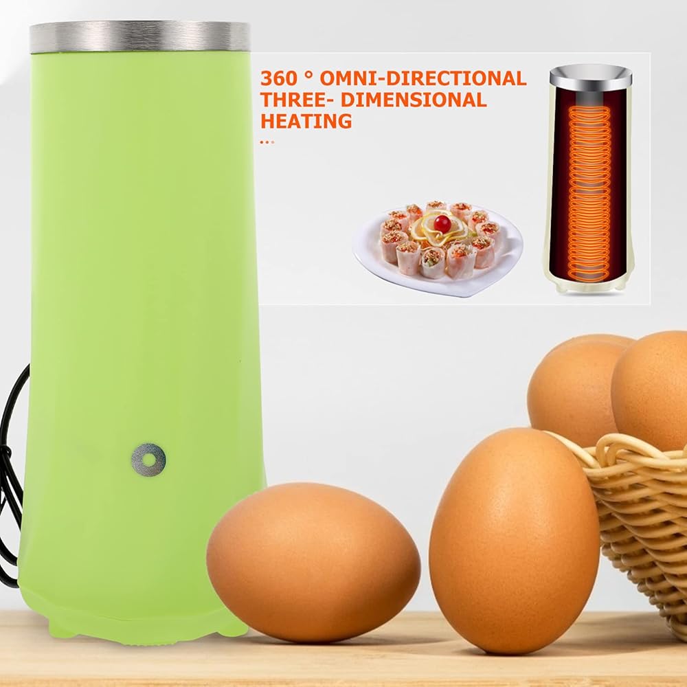 تسمح لك هذه الآلة بتحضير لفائف البيض خلال 7 دقائق، وهي مريحة للغاية في الاستخدام. يمكنك فقط وضع 1-2 بيضة ومكونات أخرى وانتظار لفة البيض المطبوخ.