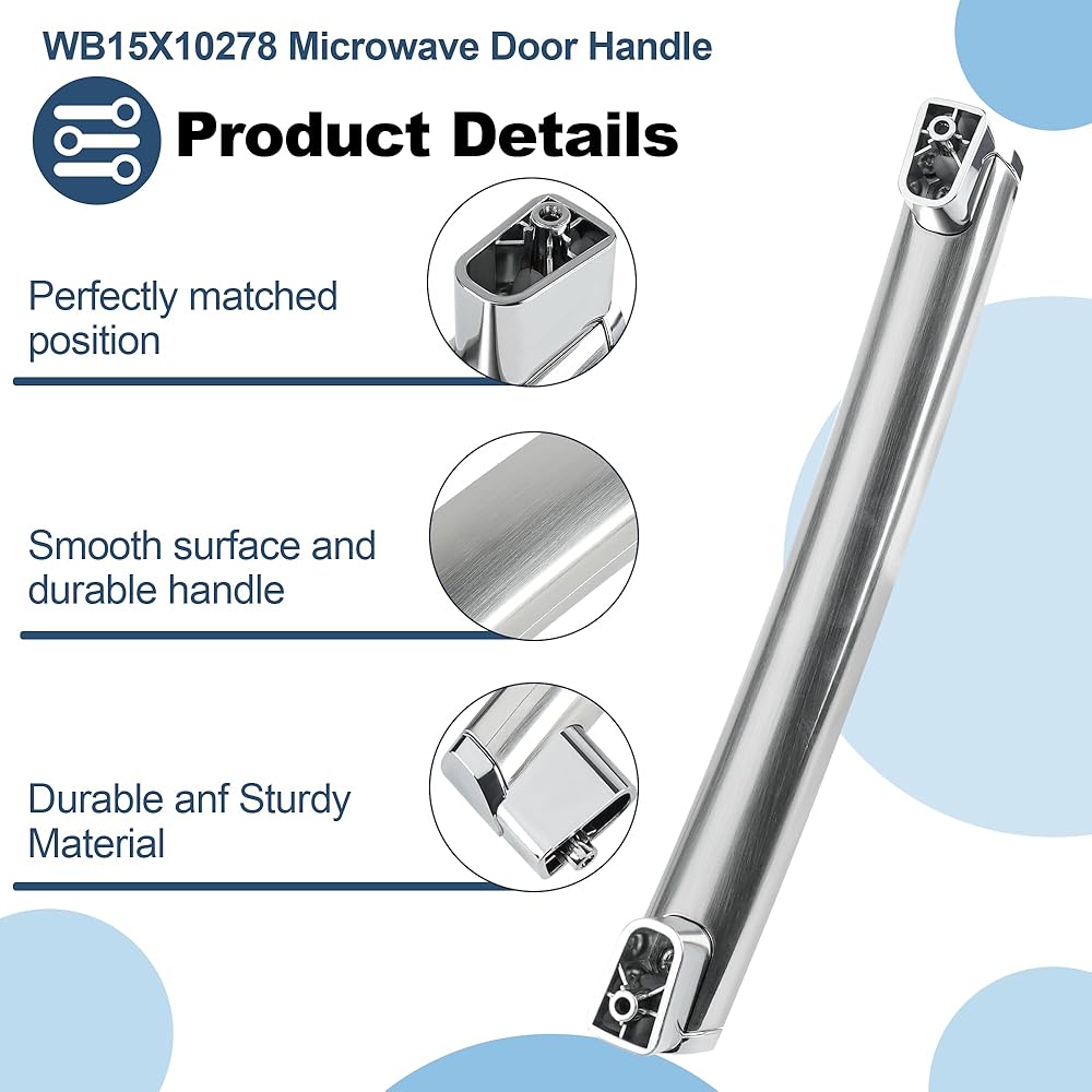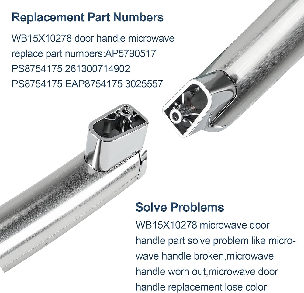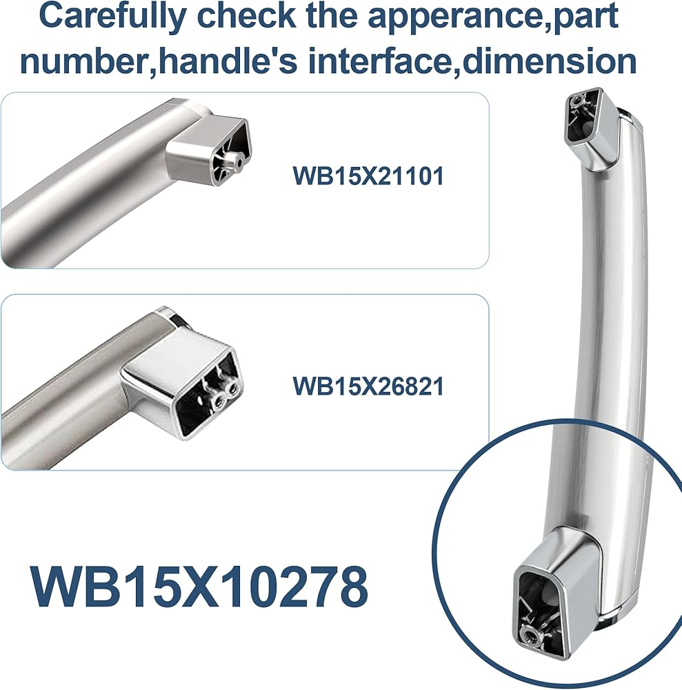 جزء مقبض باب الميكروويف WB15X10278 يحل مشكلة مثل كسر مقبض الميكروويف، وتآكل مقبض الميكروويف، واستبدال مقبض باب الميكروويف يفقد اللون. لا تتخذ قرارًا خاطئًا: يختلف Vypart WB15X10278 عن WB15X21101، وWB15X26821. مقبض الميكروويف له مظهر مشابه جدًا، ولكنه لا لا يعني أنها قابلة للاستبدال. يرجى التحقق بعناية من المظهر ورقم الجزء وواجهة المقبض وأبعاد مقبض الميكروويف wb15x10278 قبل اتخاذ القرار.