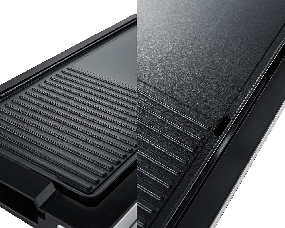 شواية وشواية 2 في 1، شواية كهربائية داخلية بدون دخان، شواية شواء سريعة التسخين بقدرة 1800 وات، طبق طهي غير لاصق، 5 مستويات درجة حرارة قابلة للتعديل، قابلة للفصل وآمنة للاستخدام في غسالة الأطباق، مقابض باردة الملمس، أسود