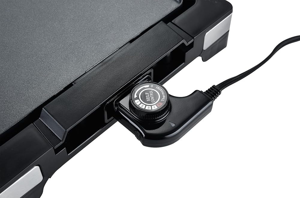 【طاقة أعلى، درجة حرارة قابلة للتعديل】تحتوي شواية الشواء هذه على عنصر تسخين مدمج؛ قوة طهي 1800 واط، تسخين سريع، لا حاجة لانتظار الطعام اللذيذ؛ قوة عالية جدًا تسخن بالتساوي، مقارنة باللهب المكشوف، وتحفز رائحة اللحوم؛ جهد عالمي 110 فولت - 120 فولت، مقبض درجة حرارة قابل للتعديل - الطبخ في 5 إعدادات مختلفة لدرجة الحرارة من الفاتر إلى البحث لمجموعة متنوعة من الأطعمة. يعمل ضوء المؤشر على التشغيل/الإيقاف بينما تحافظ الشواية على درجة حرارة الطهي المحددة.