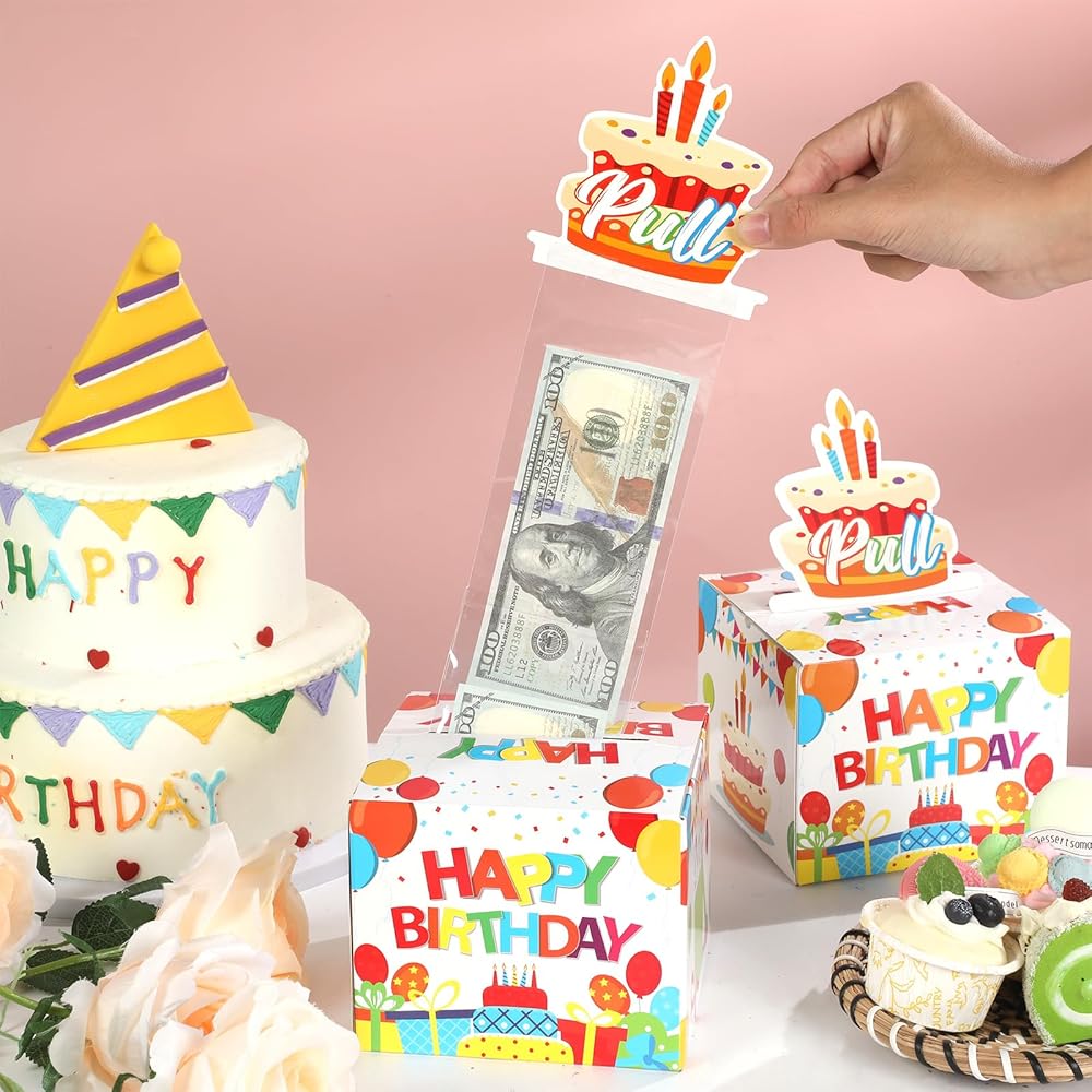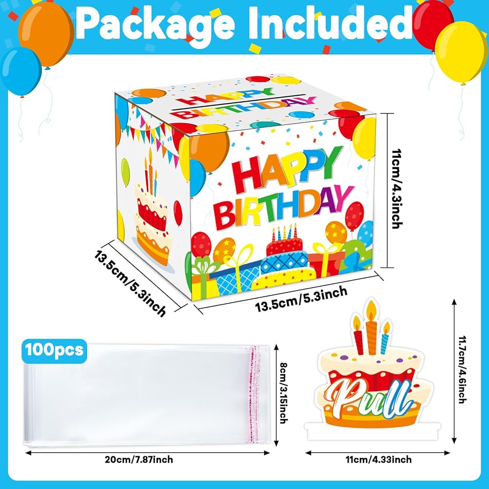 • 【صندوق نقود مفاجئ】سوف تحصل على صندوق هدايا ملون "عيد ميلاد سعيد" وبطاقة على شكل كعكة عليها كلمة "سحب" و100 كيس بلاستيكي. فقط تخيل المظهر على وجه صديقك أو عائلتك عندما يفتحون هذا الصندوق الخاص. ستكون حقا لحظة لا تنسى ولا تنسى.
