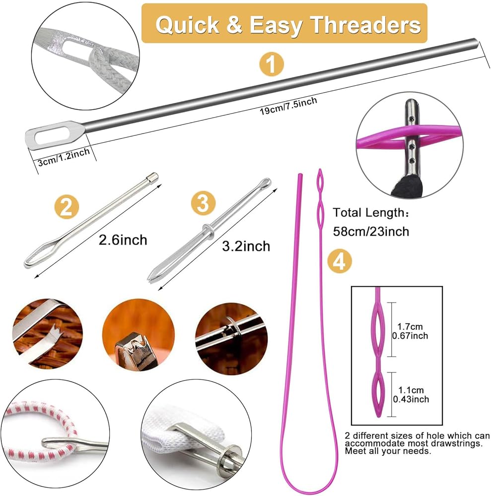 تأتي مع أربعة خيوط سهلة في العبوة، وخيط بلاستيكي واحد وثلاثة خيوط معدنية، وهي مناسبة لك لربط خيوط سميكة أو رفيعة ولا تضر ملابسك.