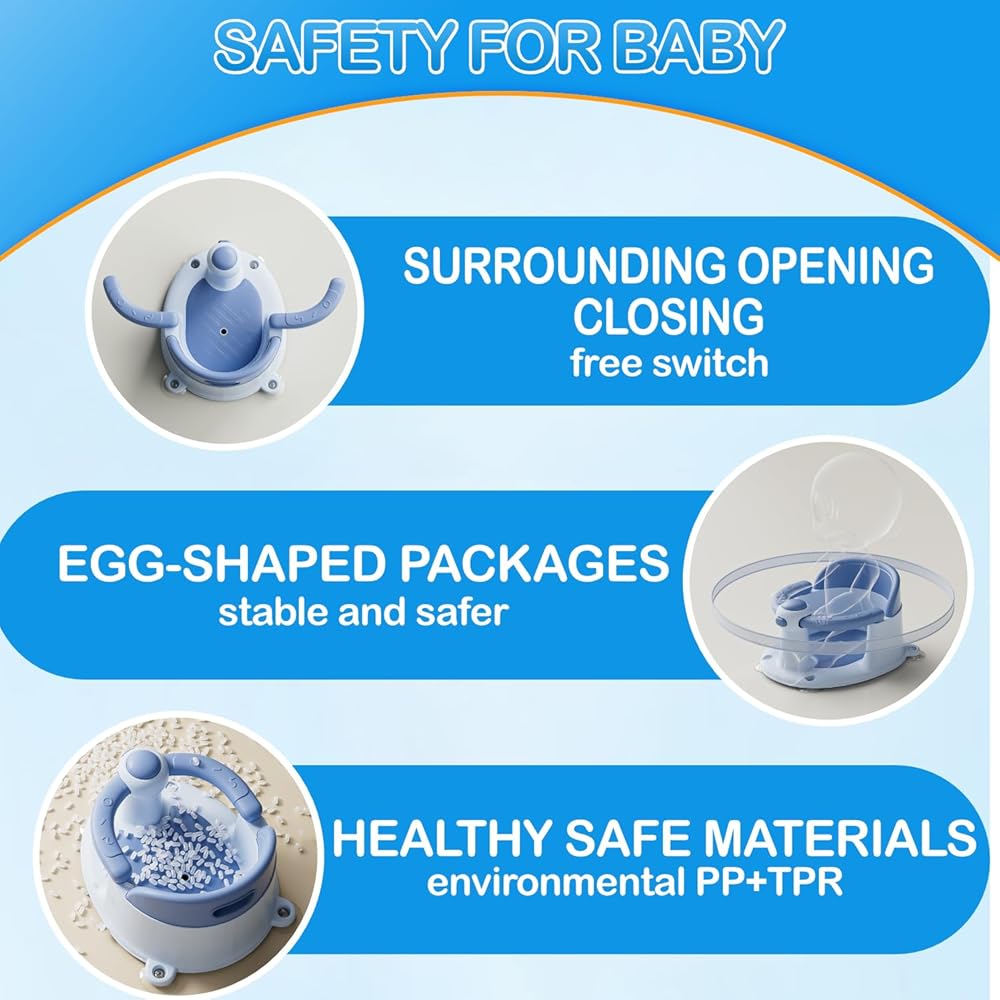 🛁 محمول وقابل للطي - يتميز مقعد حمام الأطفال هذا بآلية فتح وإغلاق بسيطة وسريعة، مما يجعل من السهل وضع طفلك في المقعد وحل مشكلة استحمام الطفل غير المريح أثناء الحركة. يمكن استخدامه في حوض الاستحمام أو غرفة المعيشة أو غرفة الاستحمام، مما يجعله خيارًا مثاليًا للسفر والعطلات وغرف الفنادق والاستخدام المنزلي.