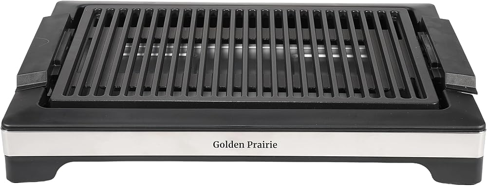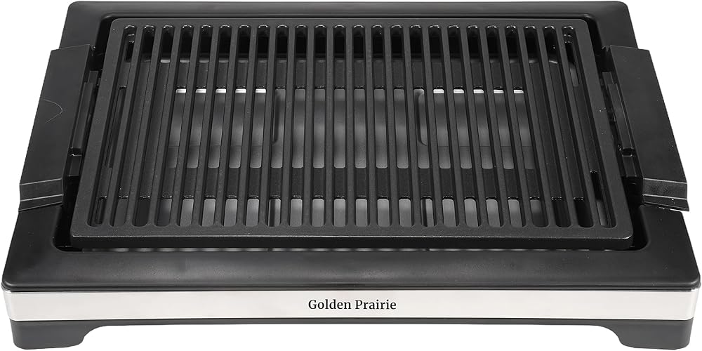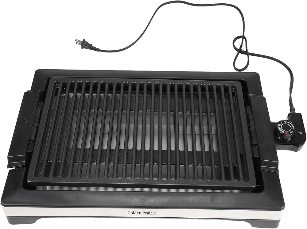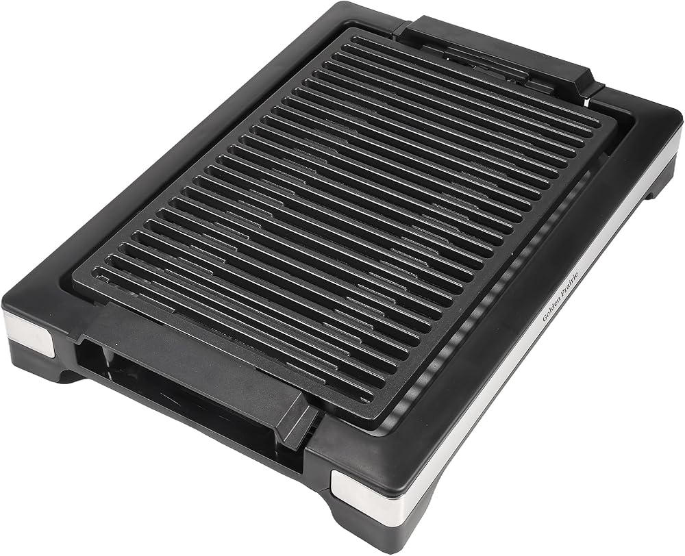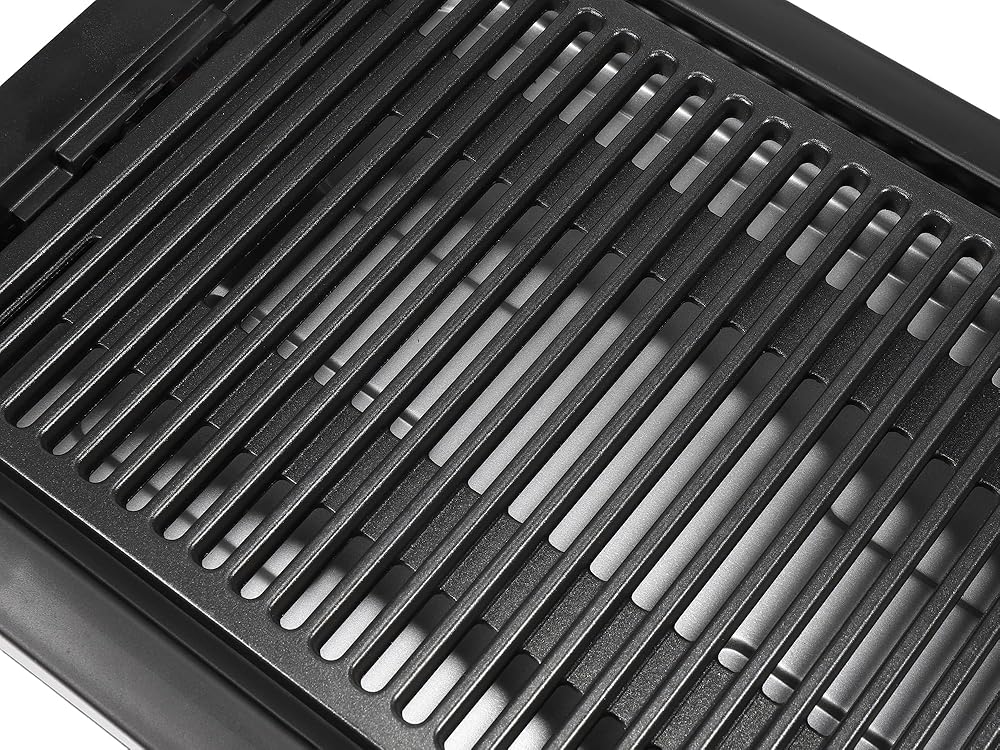 شواية كهربائية داخلية بدون دخان، شواية شواء سريعة التسخين بقدرة 1600 وات، سطح طهي غير لاصق، 5 مستويات درجة حرارة قابلة للتعديل، صينية مياه آمنة للاستخدام في غسالة الأطباق وقابلة للإزالة - سهلة التنظيف، مقابض باردة الملمس، أسود