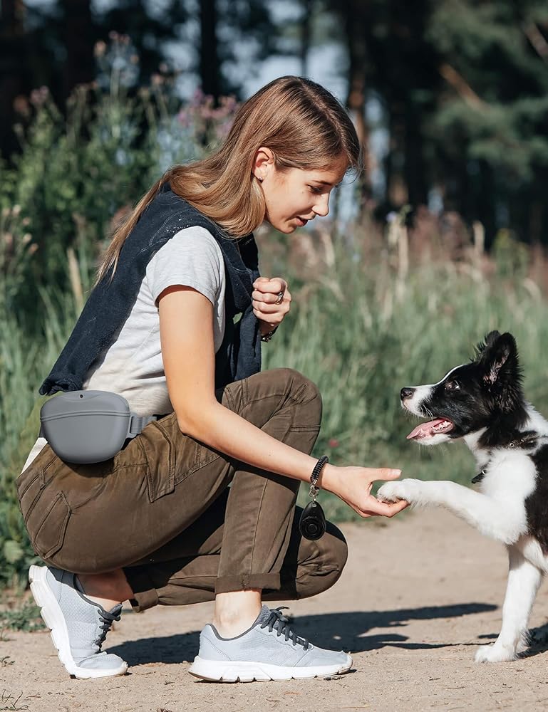 حقيبة علاج الكلاب مع أداة النقر للتدريب، ترقية الإغلاق المغناطيسي الأقوى لتجنب الانسكاب، حقيبة حلوى من السيليكون سعة 1.67 كوب مع حزام خصر لتدريب الحيوانات الأليفة على المشي (أسود)