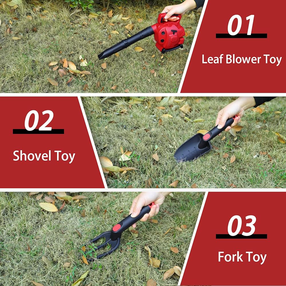 مجموعة أدوات الحديقة: يأتي منفاخ أوراق اللعب الخاص بنا مع مجموعة كاملة من أدوات الحديقة، بما في ذلك المجرفة والشوكة وحماية العين، مما يسمح للأطفال بالمشاركة في اللعب التظاهري في الحديقة وتطوير خيالهم وإبداعهم.