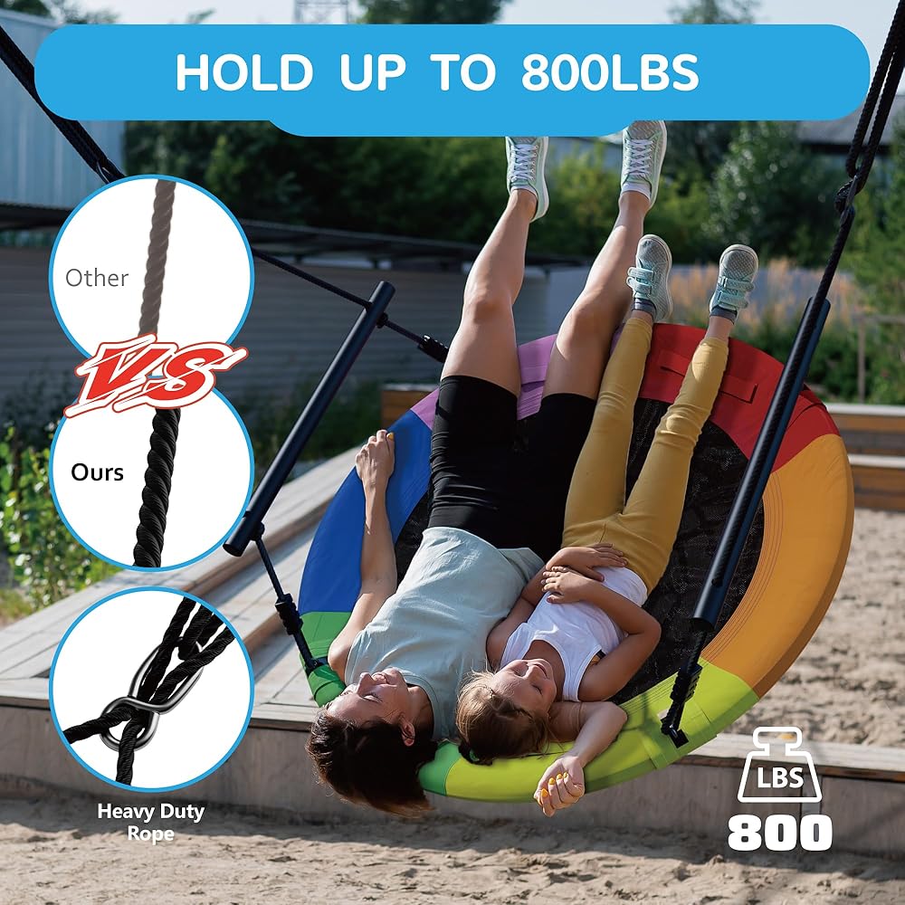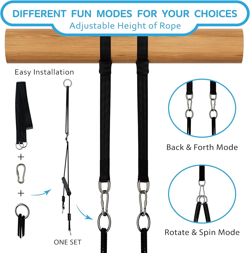 • ترقية الحبال المضفرة: تمت ترقية هذا الحبل المتأرجح الدائري الكبير إلى تصميم مضفر متعدد الخيوط قابل للتعديل على عكس الحبل العادي. يمكن تصميم الحبل المضفر حسب الطول المرغوب فيه ويتحمل ما يصل إلى 660 رطلاً لمزيد من المتانة. يمكنك تعليقها وتدويرها 360 درجة أو التأرجح ذهابًا وإيابًا للحصول على متعة مخصصة. يضمن لك الحبل القابل للتعديل الاستمتاع بإثارة التأرجح في أي وقت.