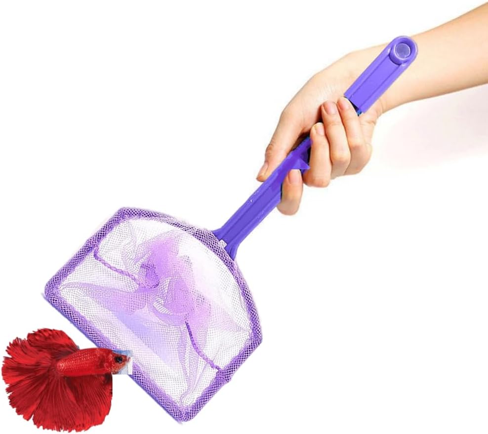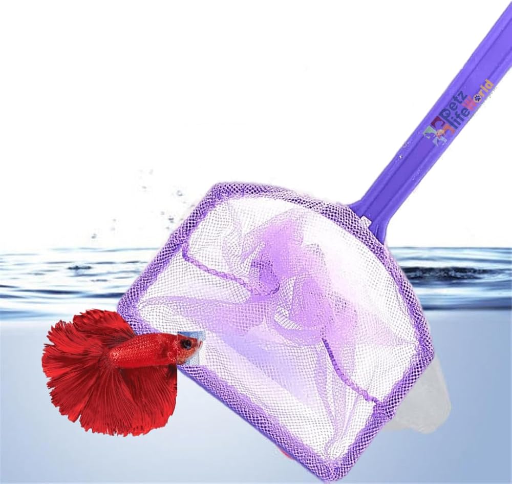 شبكة أسماك صغيرة بمقبض بلاستيكي من Petzlifeworld مقاس 10.16 سم، عبوة من قطعتين | من السهل الإمساك | شبكة قابلة لإعادة الاستخدام