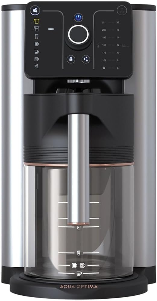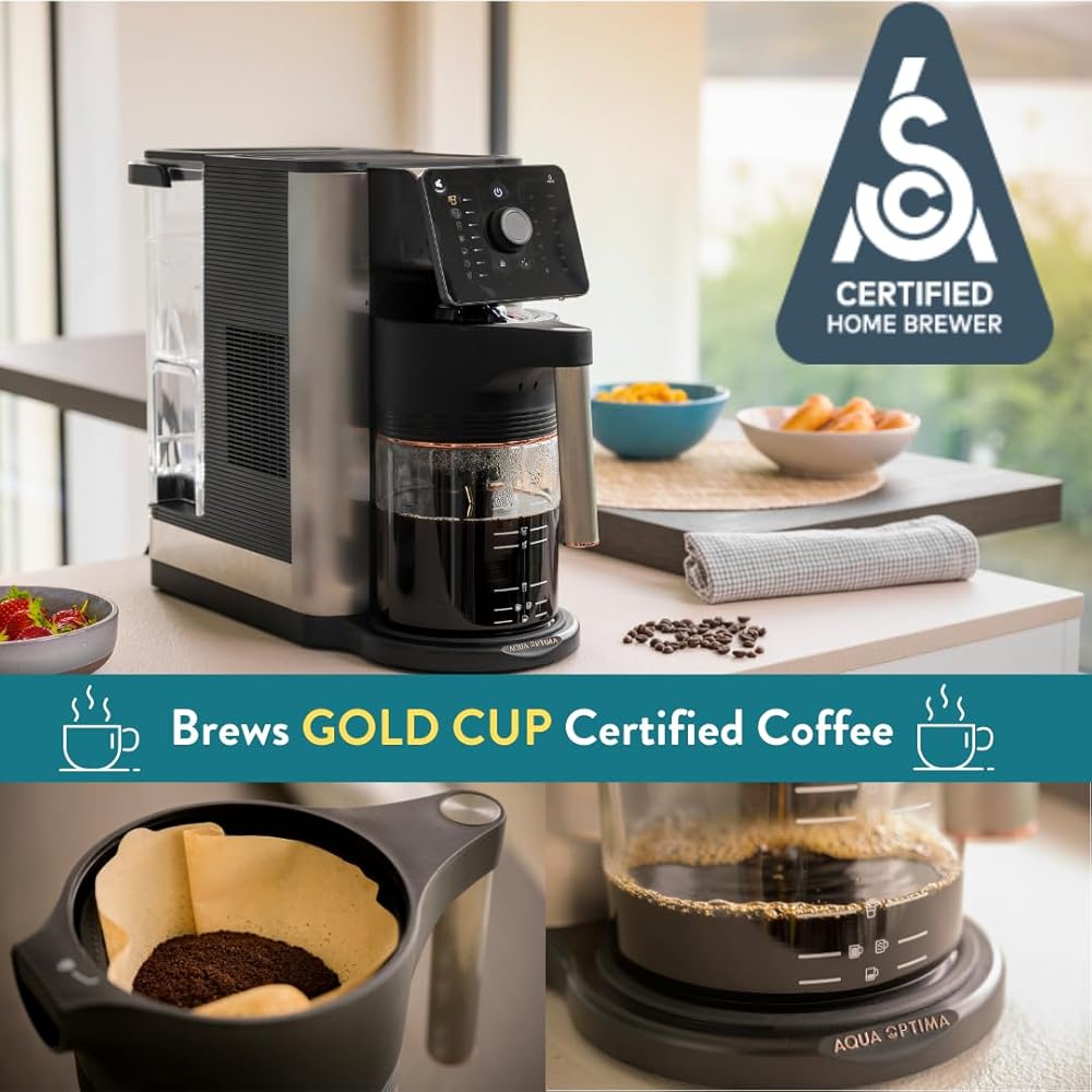 ماكينة صنع القهوة والقهوة بالتنقيط 10 أكواب من أكوا أوبتيما أورورا، معتمدة من SCA، معتمدة من WQA، فلتر مياه مدمج، إبريق زجاجي، موزع مياه ساخنة للشاي والطهي، ستانلس ستيل/أسود