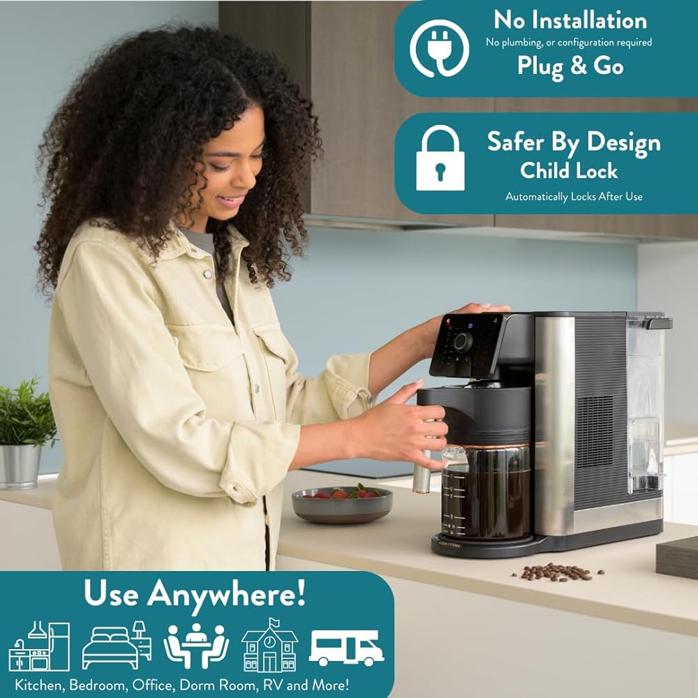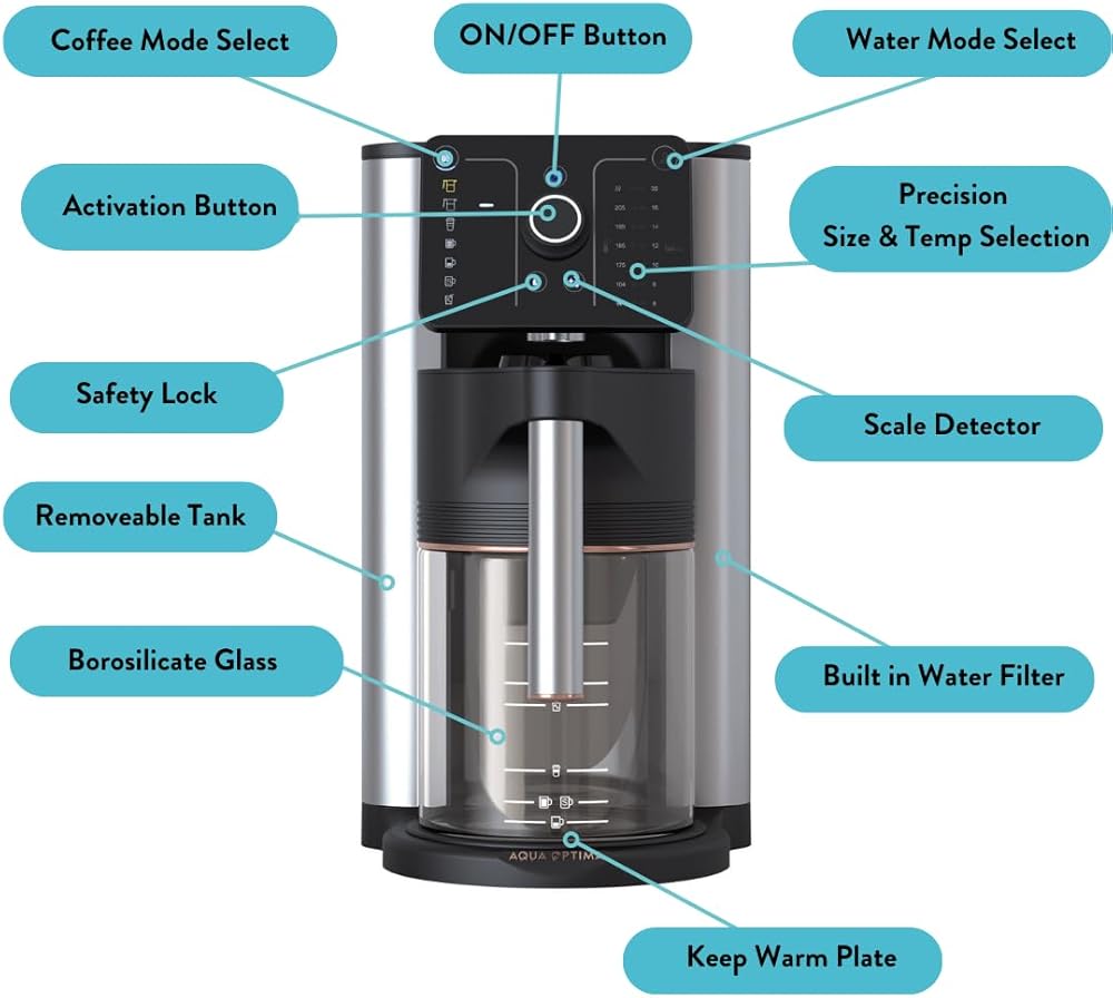 توفير المساحة: يمزج التصميم الفريد بين أفضل ميزات ماكينة صنع القهوة SCA المتميزة، وموزع الماء الساخن، وغلاية الشاي، وإبريق فلتر المياه في جهاز واحد لا يصدق. القدرة على الاستخدام المتعدد.