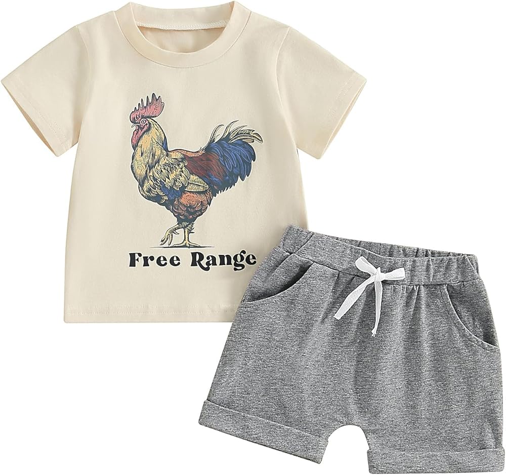 🐓🐄🐎 تتضمن الحزمة: 1 * قمصان + 1 * شورت، أطقم قصيرة للأولاد الصغار، مع أحذية وقبعات، مناسبة لنزهات الأطفال واللعب والسفر والتخييم وحديقة الحيوانات والحديقة النباتية وحوض السمك وملعب الأطفال والمناسبات الأخرى.
