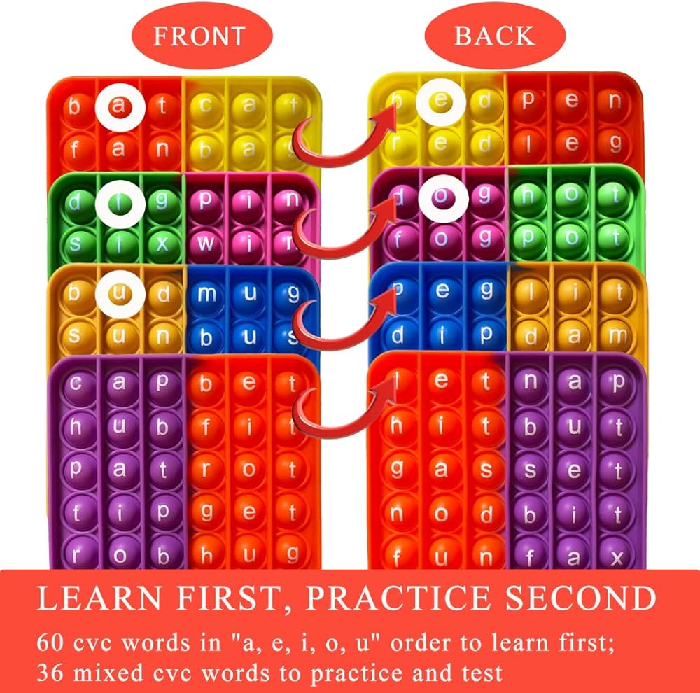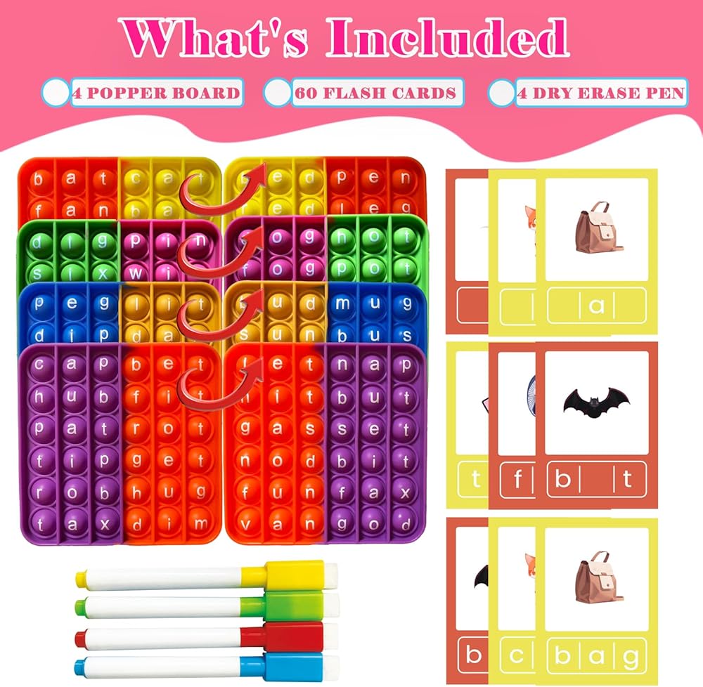 ألعاب كلمات البصر CVC مع 4 ألواح فيدجيتي بوبر و60 بطاقة فلاش، نشاط تعلم القراءة والكتابة والتهجئة الصوتية لرياض الأطفال، لعبة تعليمية حسية، يجب اقتناؤها في الفصول الدراسية لمرحلة ما قبل المدرسة