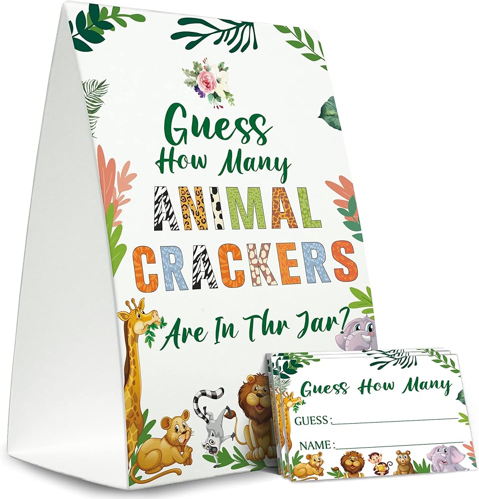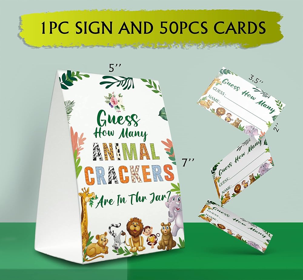 لافتة استحمام الطفل من وودلاند أنيمالز، خمن كم عدد لافتة لعبة المفرقعات الحيوانية، مجموعة استحمام الطفل وودلاند (علامة واحدة + 50 بطاقة تخمين) لافتة استحمام الطفل الغابة الخضراء-H01
