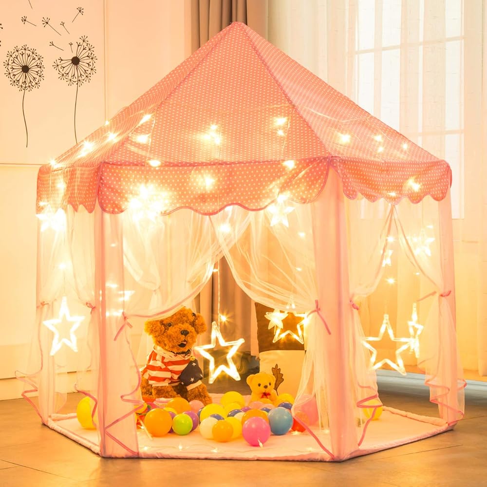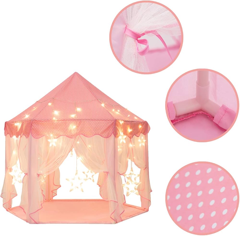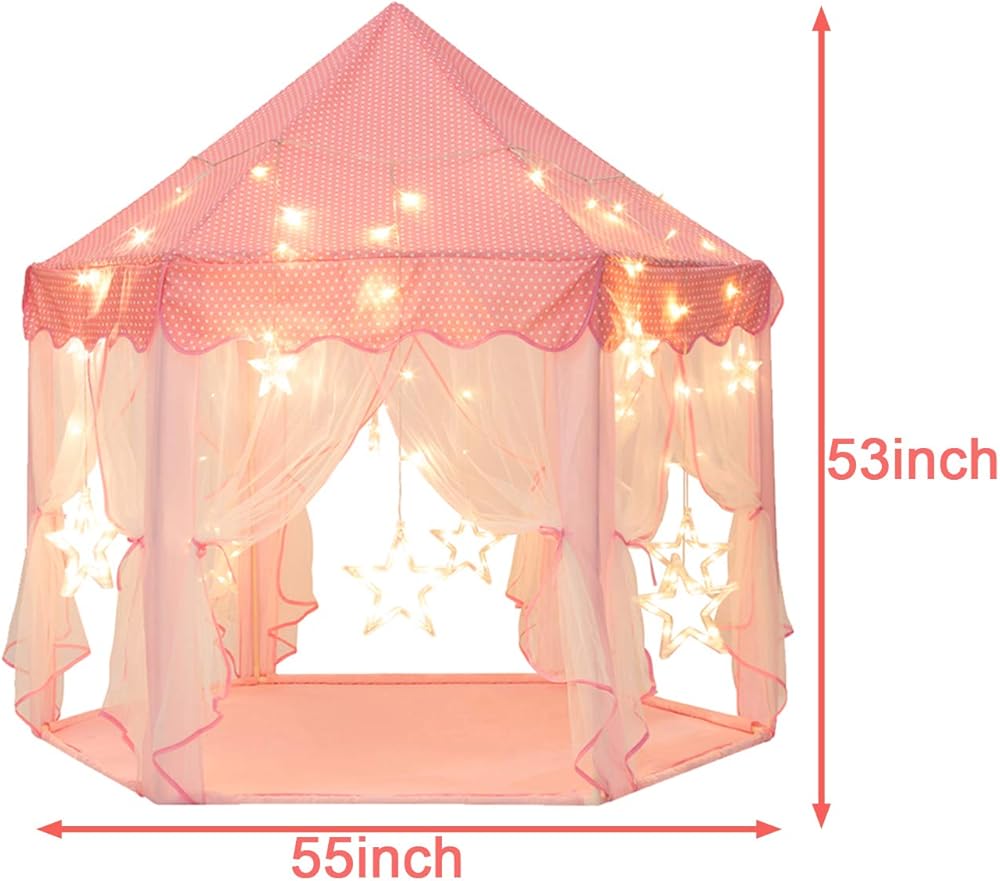 خيمة الأميرة Sunnyglade مقاس 55 بوصة × 53 بوصة مع أضواء نجوم كبيرة وكبيرة بطول 8.2 قدم للفتيات، خيمة لعب كبيرة للأطفال في القلعة للأطفال، ألعاب داخلية وخارجية، هدية يوم الأطفال
