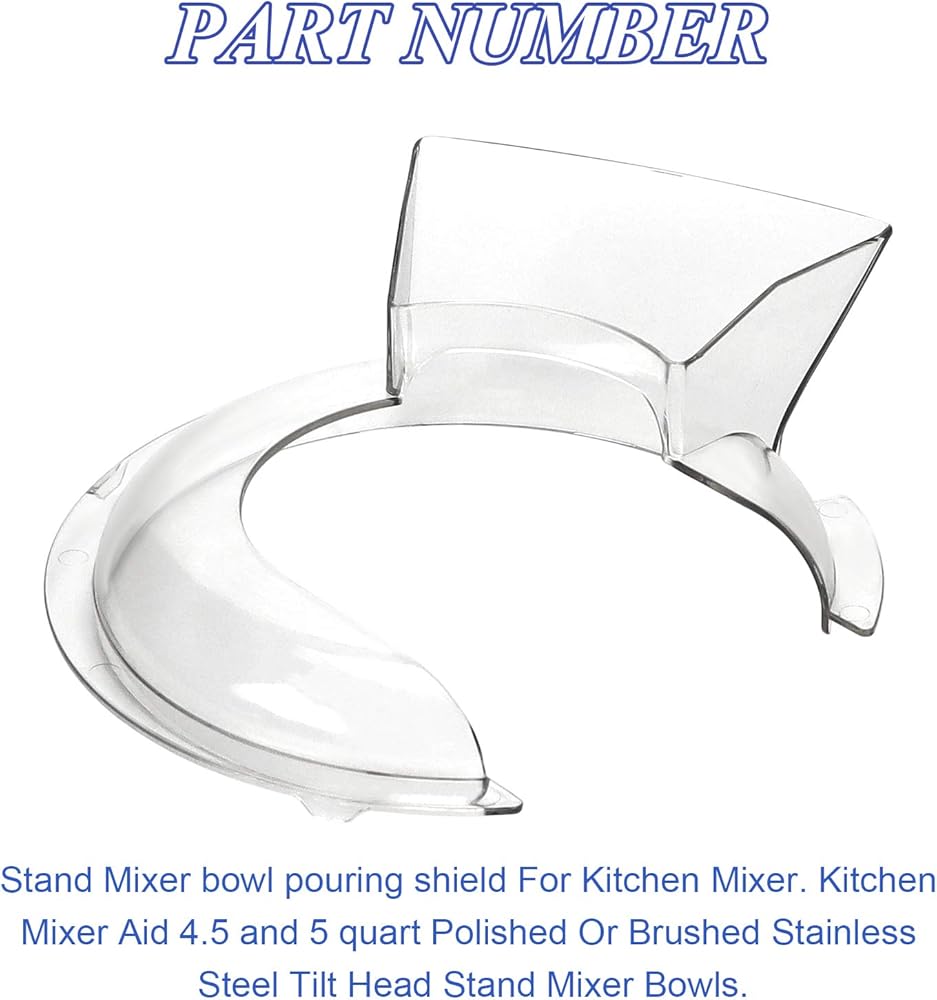 𝐏𝐀𝐑𝐓 𝐍𝐔𝐌𝐁𝐄𝐑 --KN1PS وعاء خلاط حامل يسكب درع لخلاط المطبخ. مساعد خلاط المطبخ بسعة 4.5 لتر، أوعية خلاط بحامل رأس مائل من الفولاذ المقاوم للصدأ المصقول أو المصقول ولا تعمل مع الأوعية الزجاجية أو الأوعية الخزفية أو الأوعية الأكبر من 5 كيو تي. سواء كنت تقوم بصنع الكعك أو إعداد عجينة الخبز، فإن درع السكب KN1PS الخاص بنا يضمن سهولة الاستخدام. الدقة في كل عملية.