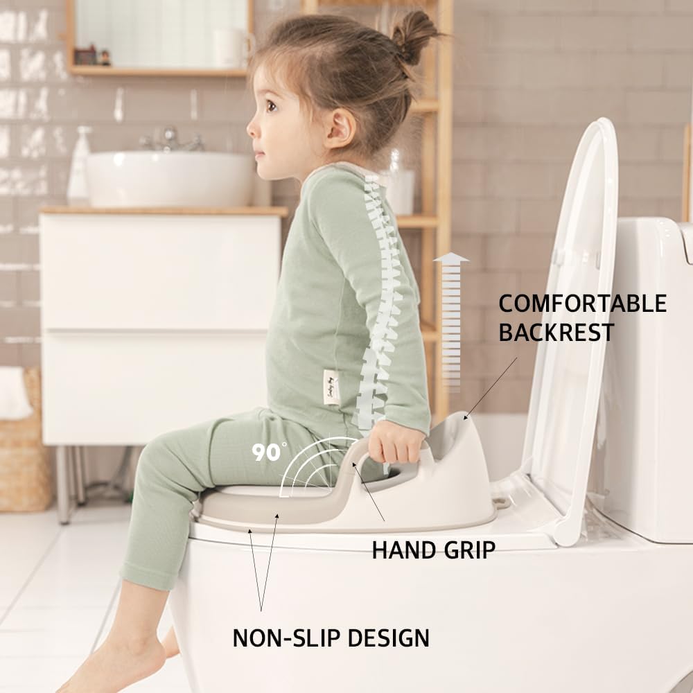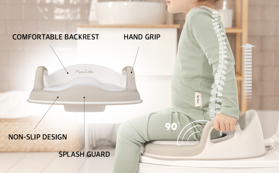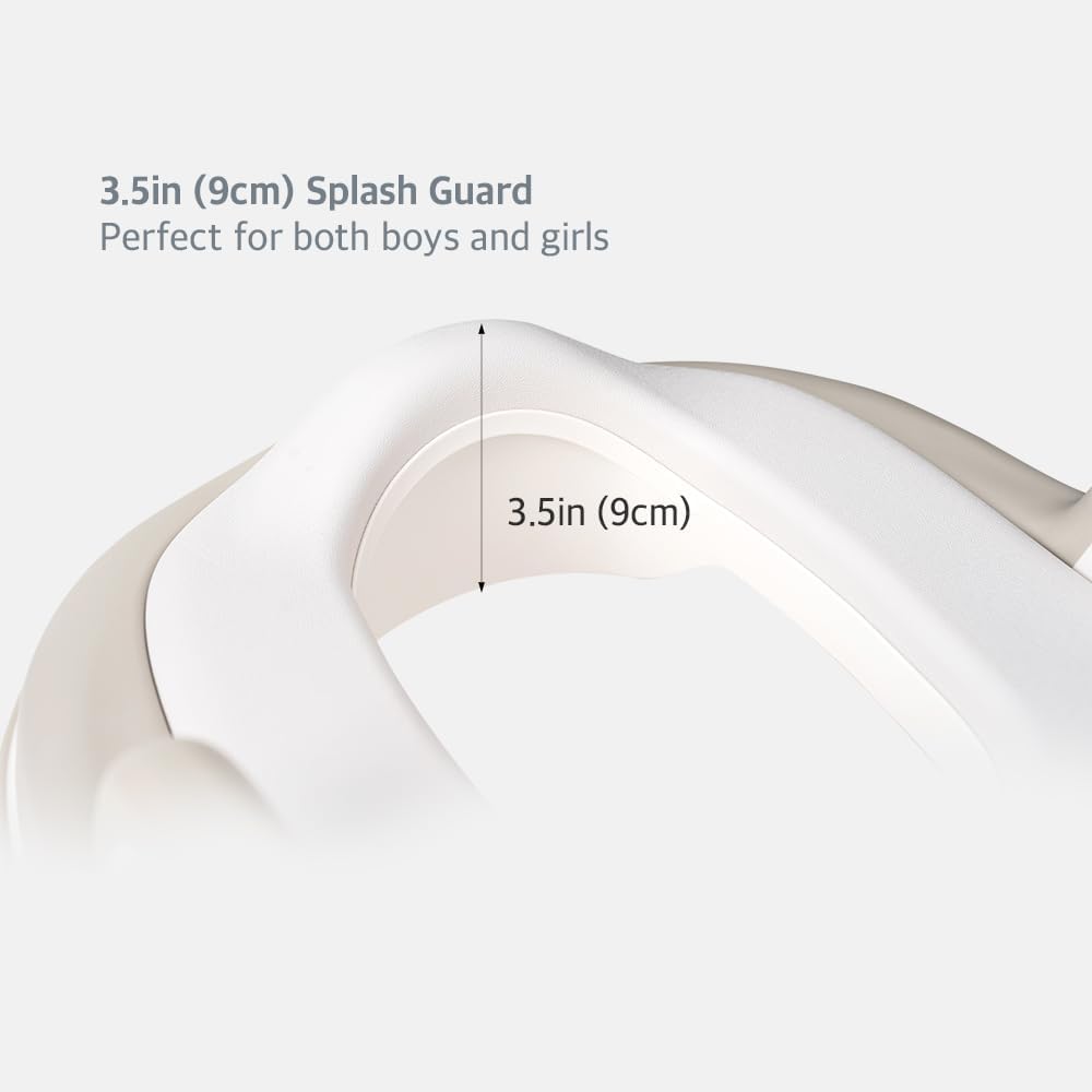 تصميم مريح: تصميم مسند الظهر المرتفع يدعم ظهر الطفل بشكل مريح، ويحمي عموده الفقري ويضمن الراحة عند استخدام المرحاض. يمنع الواقي المضاد للرذاذ الانسكابات خارج المرحاض، مما يجعله مثاليًا لاستخدام الأولاد والبنات.