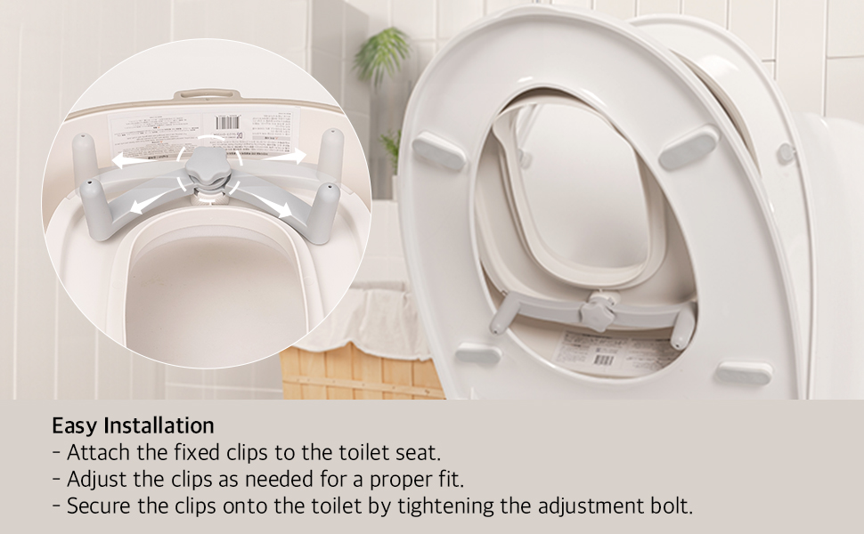يناسب معظم المراحيض: مصمم ليناسب معظم المراحيض القياسية بشكل آمن (غير مناسب للمراحيض ذات الشكل المربع). يتميز بمشابك سريعة التضييق على الجانب السفلي يمكن تركيبها بسهولة على مرحاض البالغين، مما يسمح بالتركيب في ثوانٍ معدودة.