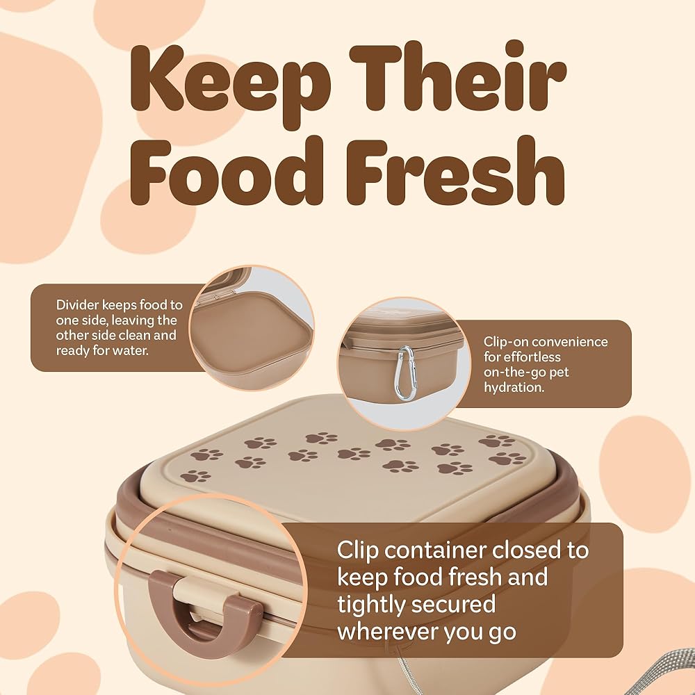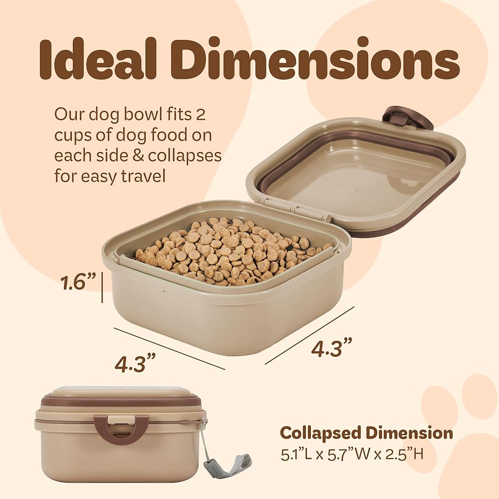 حاوية خالية من مادة BPA: وعاء السفر القابل للطي مصنوع من مواد خالية من مادة BPA، مما يوفر حلاً آمنًا وصحيًا لتغذية الكلاب والقطط. حاوياتنا آمنة للبشر، مما يضمن أفضل رعاية لحيواناتنا الأليفة.