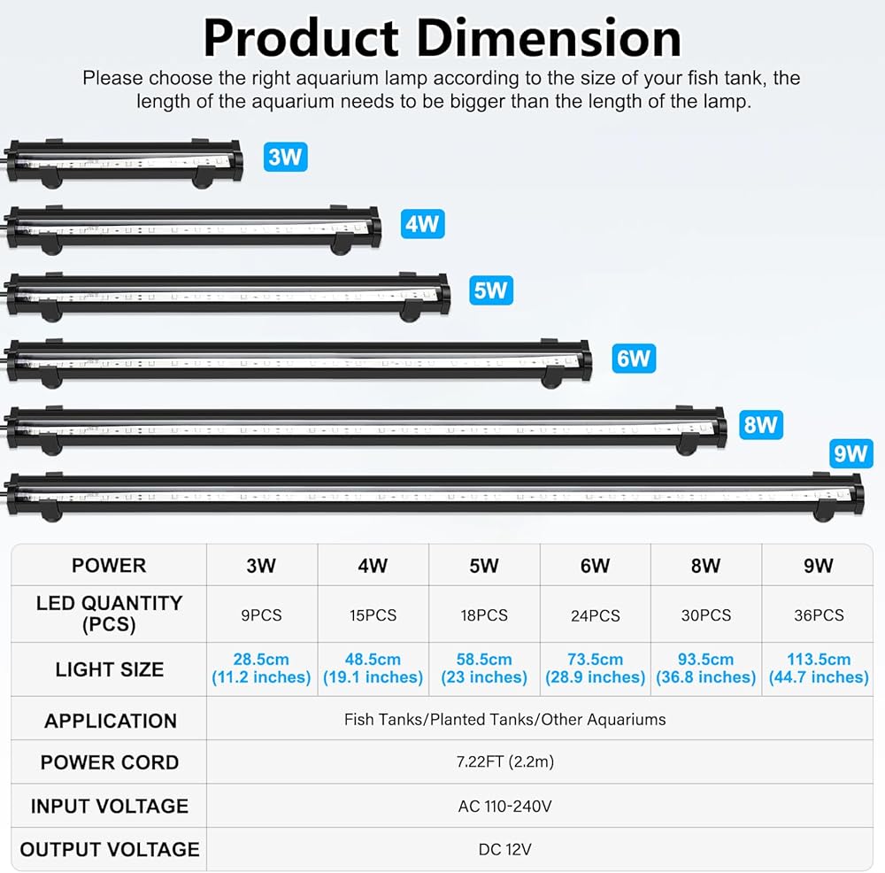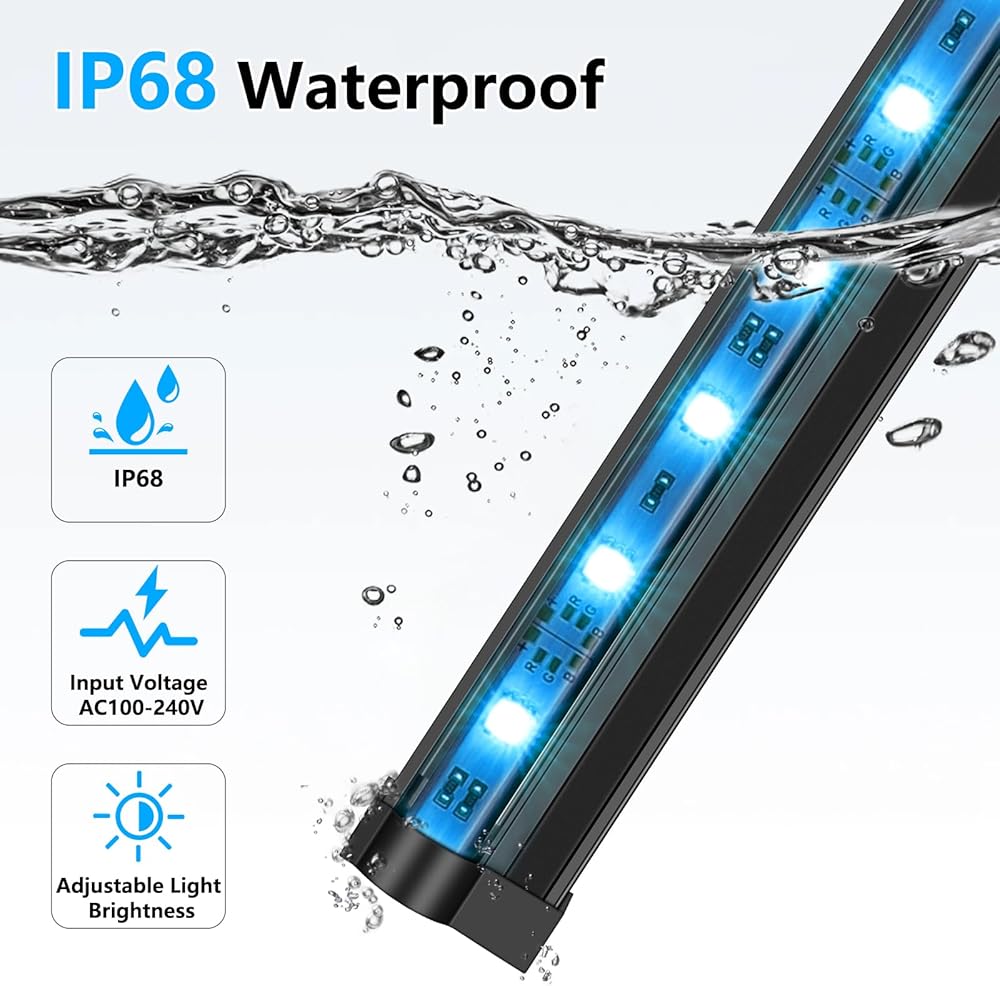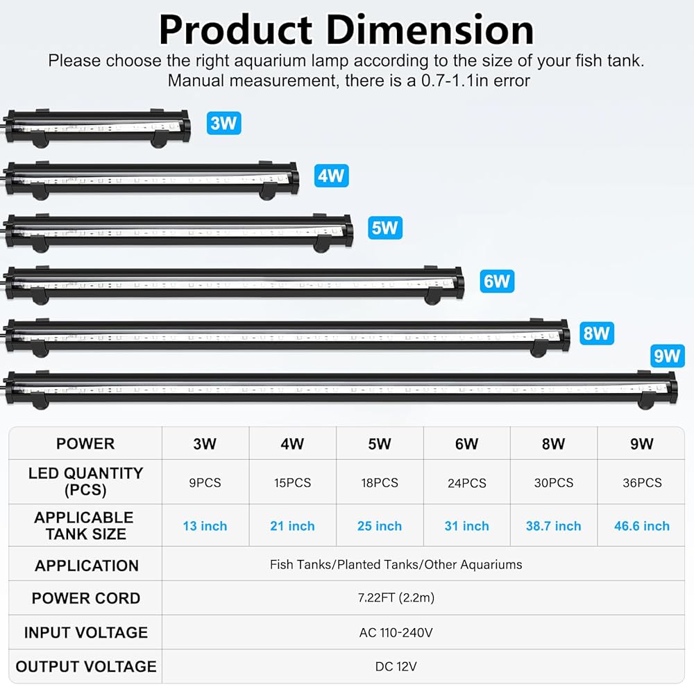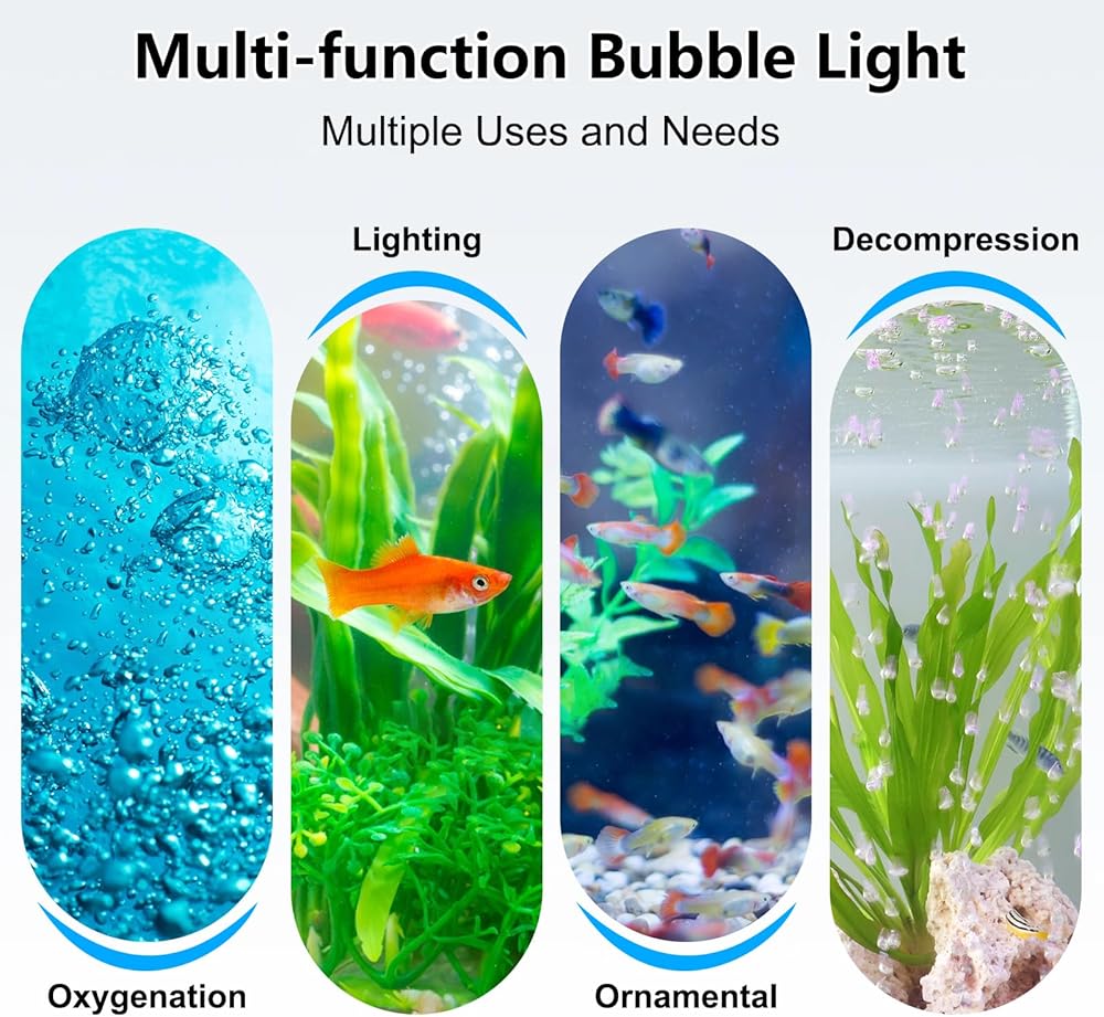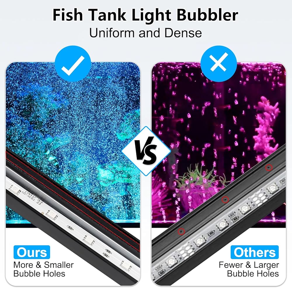 【مصباح فقاعات حوض السمك IP68 مقاوم للماء】 فقاعات ضوء خزان الأسماك بدرجة IP68 مقاومة للماء، يمكن أن تعمل بالكامل تحت الماء، باستخدام نسخة مطورة من المواد الفعالة المقاومة للماء والتصميم، عند الاستخدام، الفقاعات موحدة، لن يتم حجبها، مزيج من الضوء والفقاعات. ، تحسين كبير في خزان أسماك الزينة. ملحوظة: عند اختيار مصباح حوض السمك، يرجى الانتباه إلى حجم حوض السمك الخاص بك، يجب أن يكون الجانب الأطول أكبر من طول المصباح.