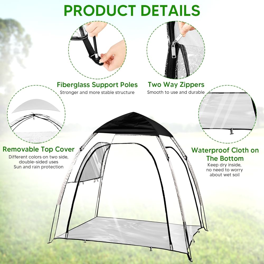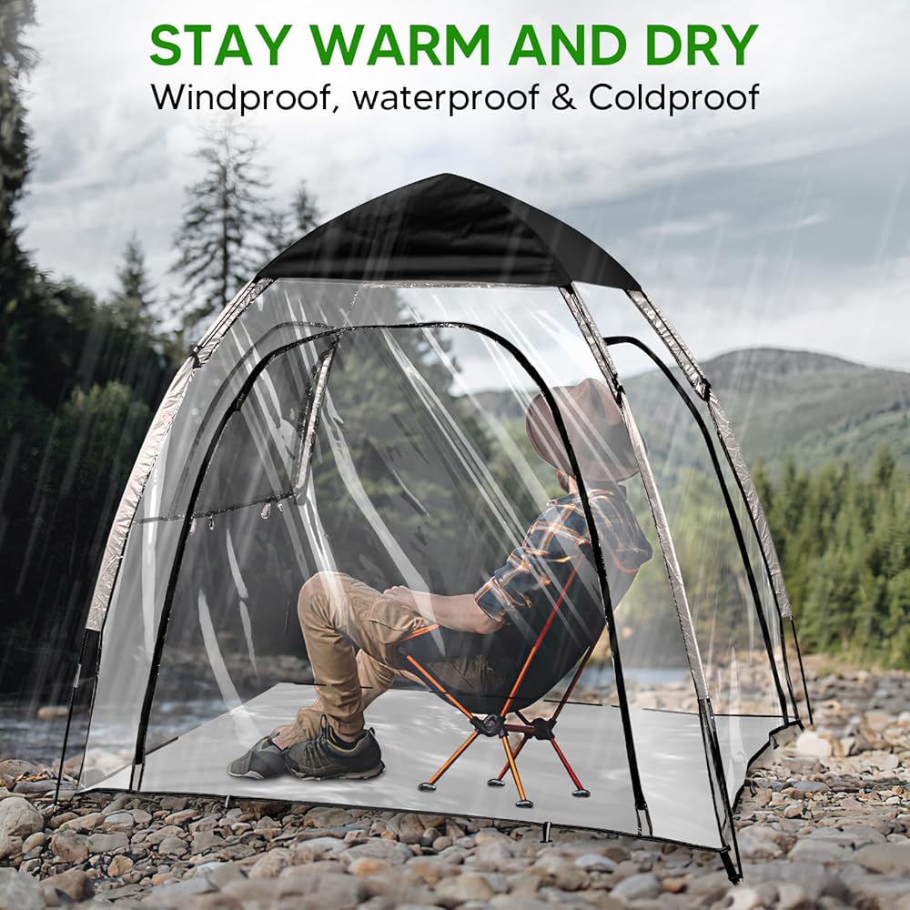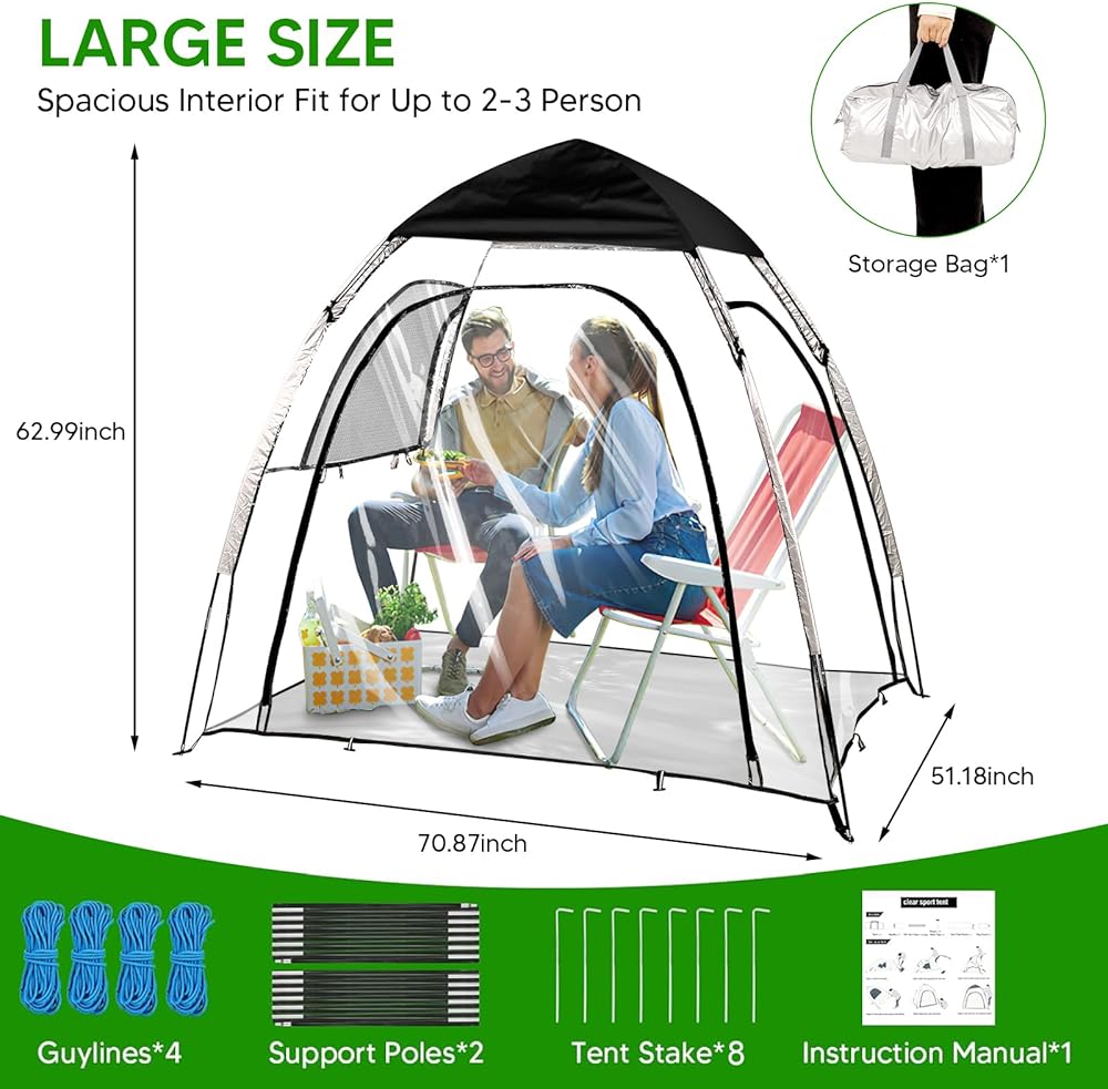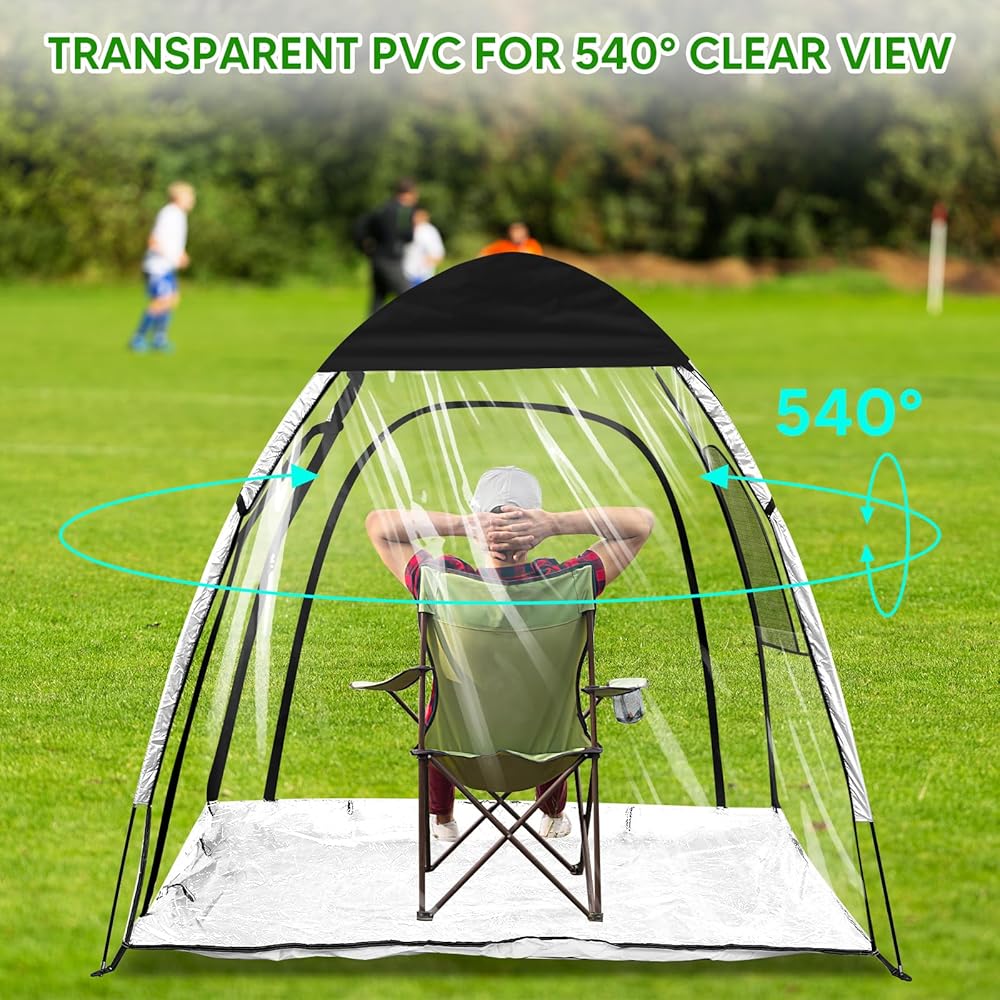 • 【540-Degree Clear Vision】With ultra-transparent PVC material, our sports tent offers a clear 540-degree panoramic view. Ideal for watching outdoor sports events such as soccer, baseball, softball, field hockey and variety outdoor activities such as camping, fishing, barbecue. In addition, the fully transparent appearance is perfect for stargazing at night.