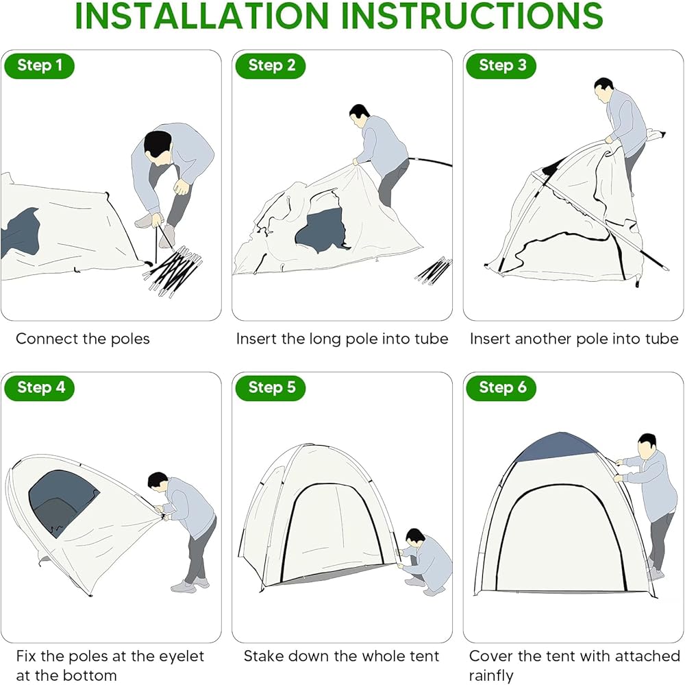 • 【Thoughtful Design】Our sports shelter weather tent features double-sided zippers for easy access in and out. It features a waterproof ground cloth at the bottom and a removable top cover for sun and rain protection. A small pocket is attached to the inside of the tent for storing small items such as a mobile phone. The product is equipped with 4 ropes and 8 ground pegs, which can firmly peg the tent to the land and ensure the stability of the tent even in windy weather.