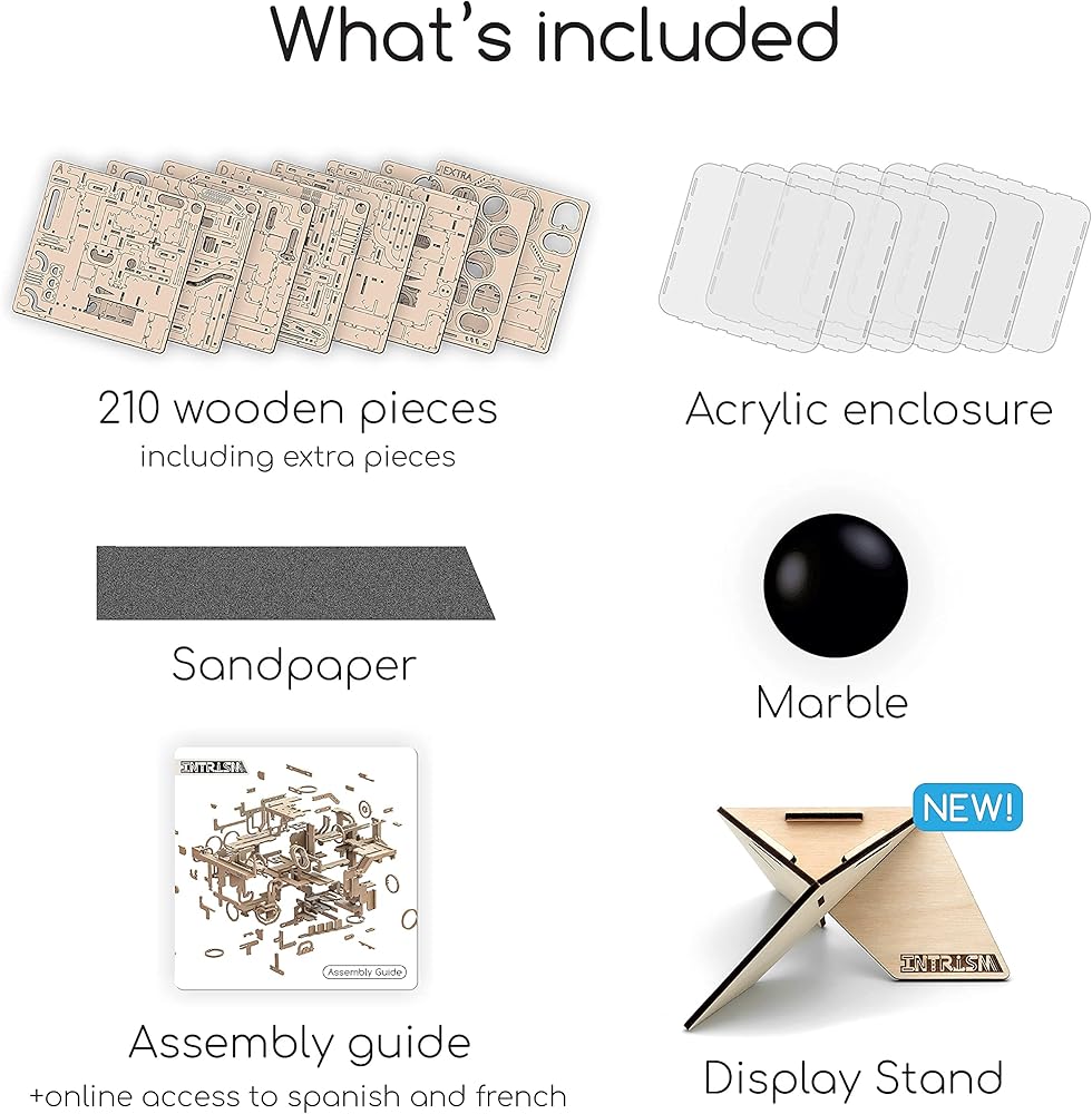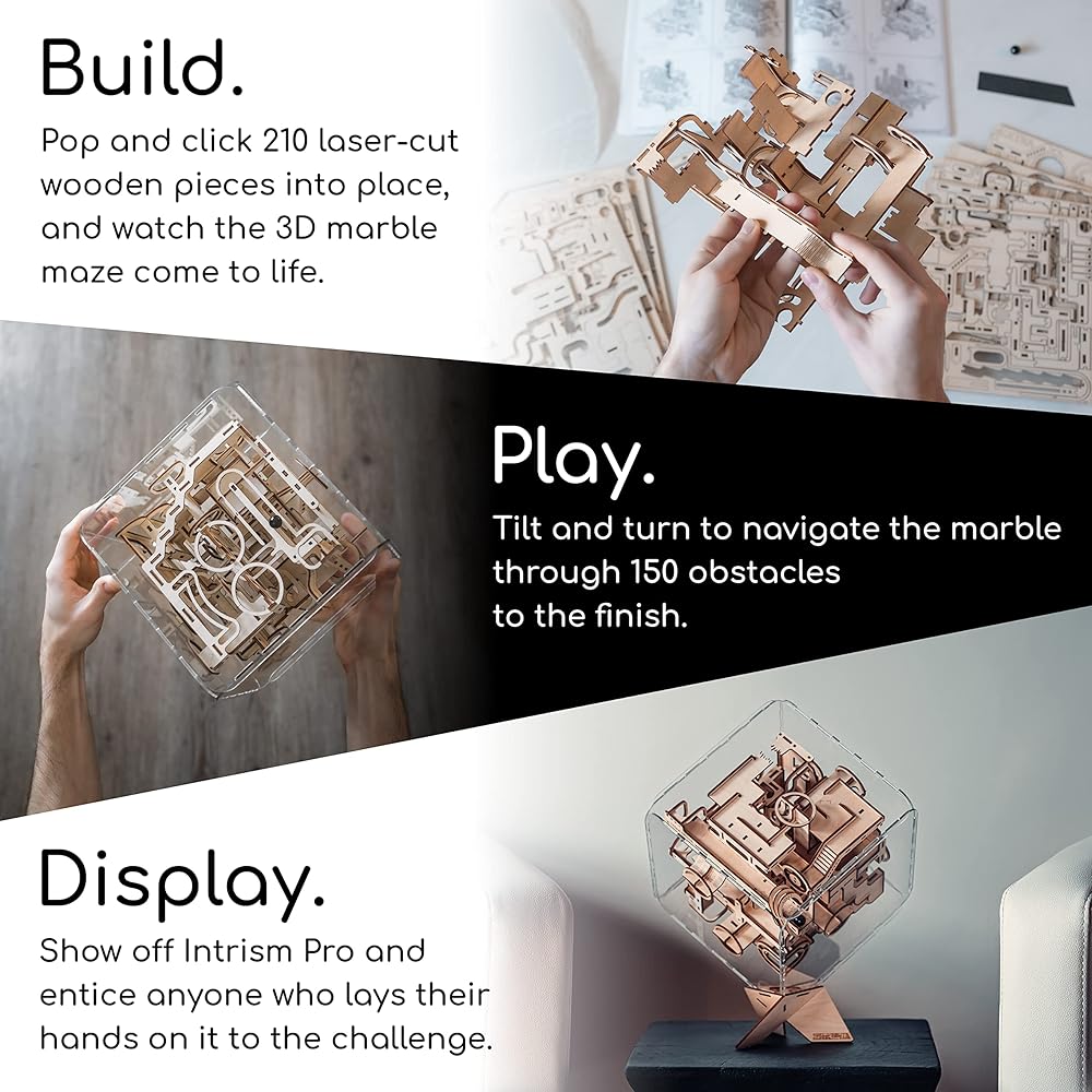 مكعب ألغاز ثلاثي الأبعاد رائع: الألغاز ثلاثية الأبعاد المثالية للبالغين، ألغاز تحفيز الدماغ المعقدة لدينا توفر ثلاثة (3) في واحد (1) إثارة! مع أكثر من 200 قطعة، قم بتجميع الخشب المقطوع بالليزر بدقة، وانخرط في متاهة رخامية ممتعة مع أكثر من 150 عائقًا مختلفًا، واعرضها كقطعة فنية فريدة من نوعها من المؤكد أنها "تبهر" الضيوف وتلهم "أوه" و" اه."