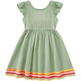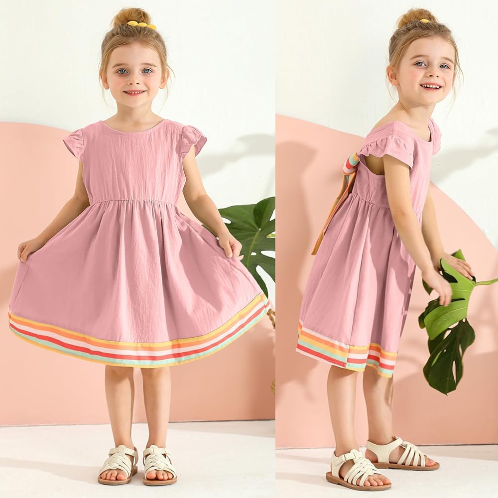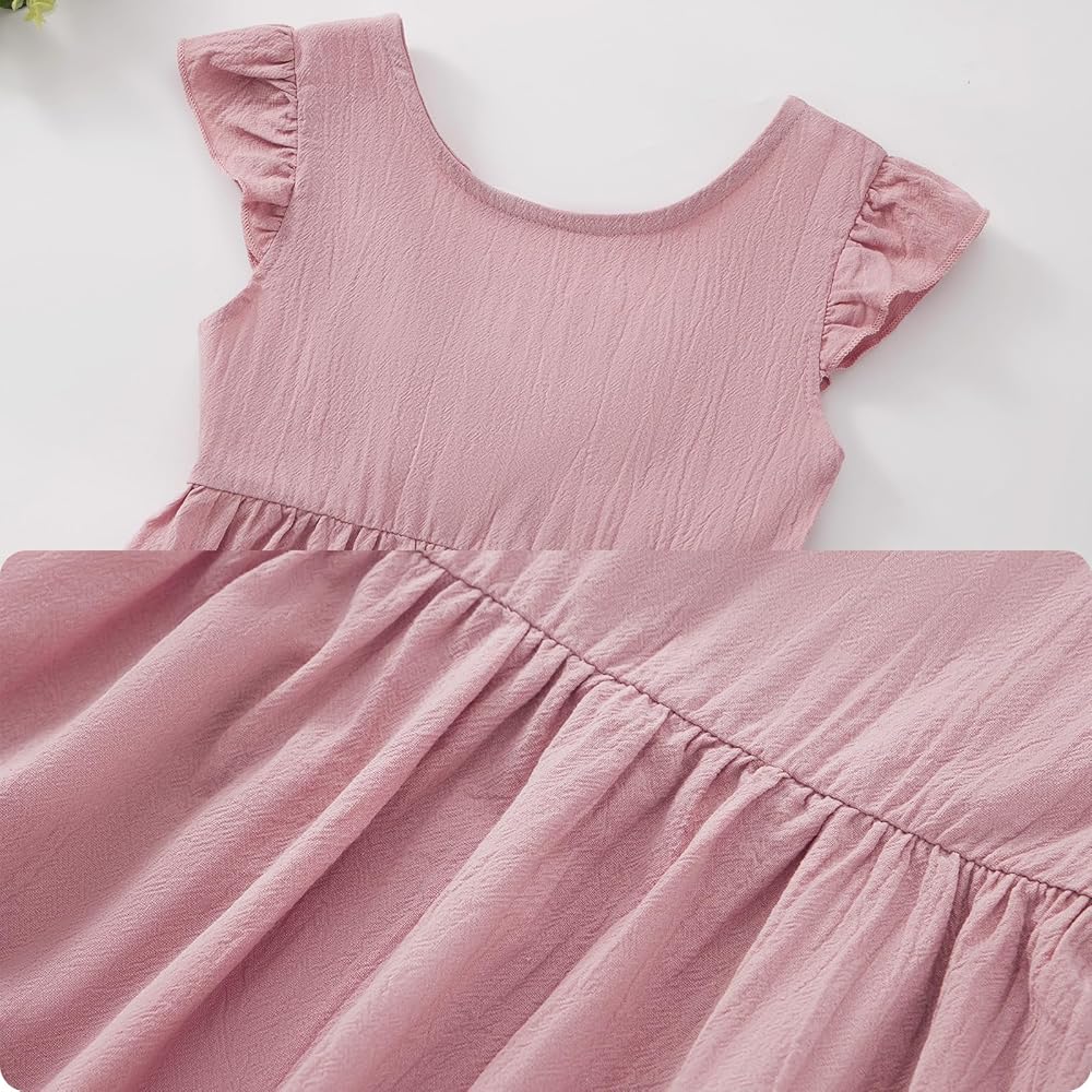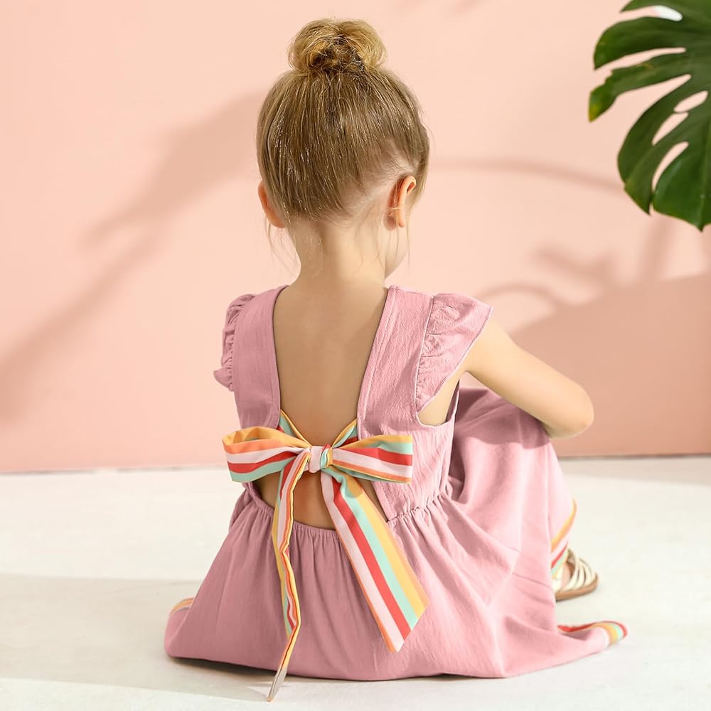 تصميم الموضة: فستان شمس كاجوال مكشكش للفتيات الصغيرات مع تصميم بدون ظهر ورباط، فستان من الكتان للفتيات بدون ظهر مع عقدة فيونكة، بسيط وكلاسيكي. الفستان ذو الأكمام المكشكشة مليء بمشاعر الصيف التي تجعل فتاتك جميلة ورائعة وأنيقة.