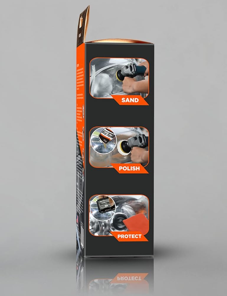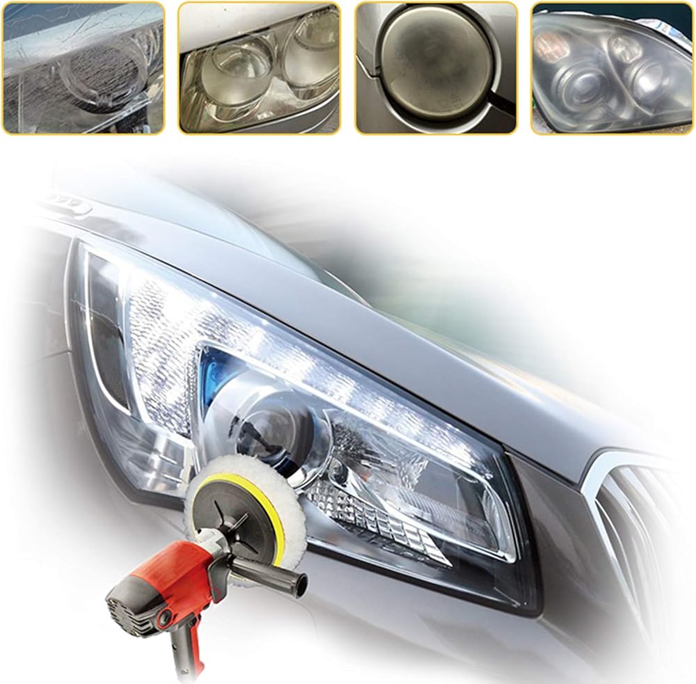 【ملاحظة ودية】تتضمن المجموعة وسادة دعم مع محول يسمح بتلميع الماكينة من أجل استعادة العدسات الأكثر سحامة. لا تتضمن مجموعة ترميم المصابيح الأمامية للسيارة آلة تلميع منزلية