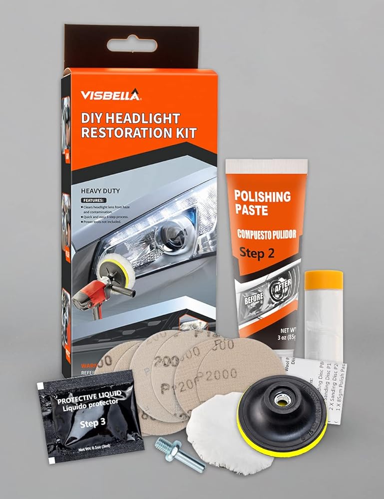 【تحسين سلامة القيادة】مجموعة استعادة عدسة المصباح الأمامي تعيد الوضوح إلى عدسات المصابيح الأمامية التي أصبحت صفراء أو غائمة أو ضبابية، وتحسن أداء المصباح الأمامي وتجتاز الفحص السنوي للمركبات بسهولة