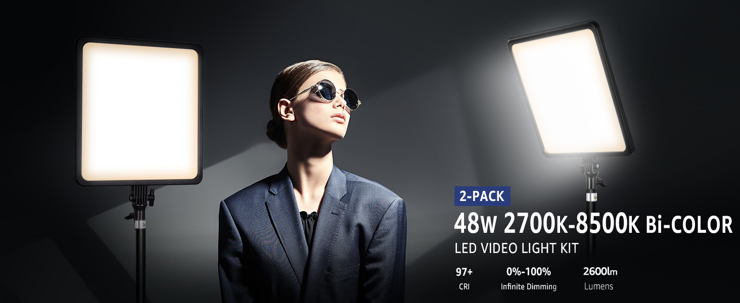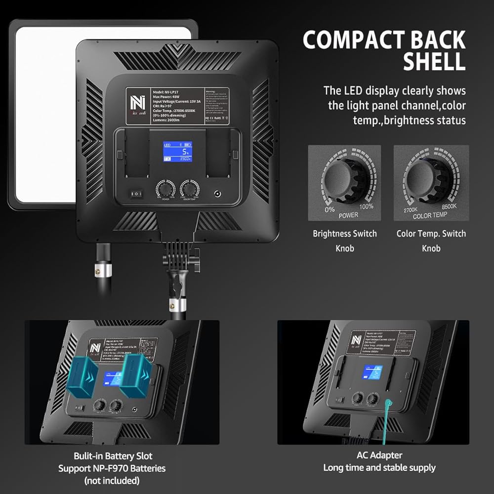 مجموعة إضاءة فيديو ثنائية اللون مقاس 17 بوصة، NiceVeedi 48W 2700-8500K LED للتصوير الفوتوغرافي مع جهاز تحكم عن بعد، 1% -100% لا نهائية قابلة للتعتيم CRI 97+ إضاءة استوديو احترافية لتصوير فيديو الاستوديو