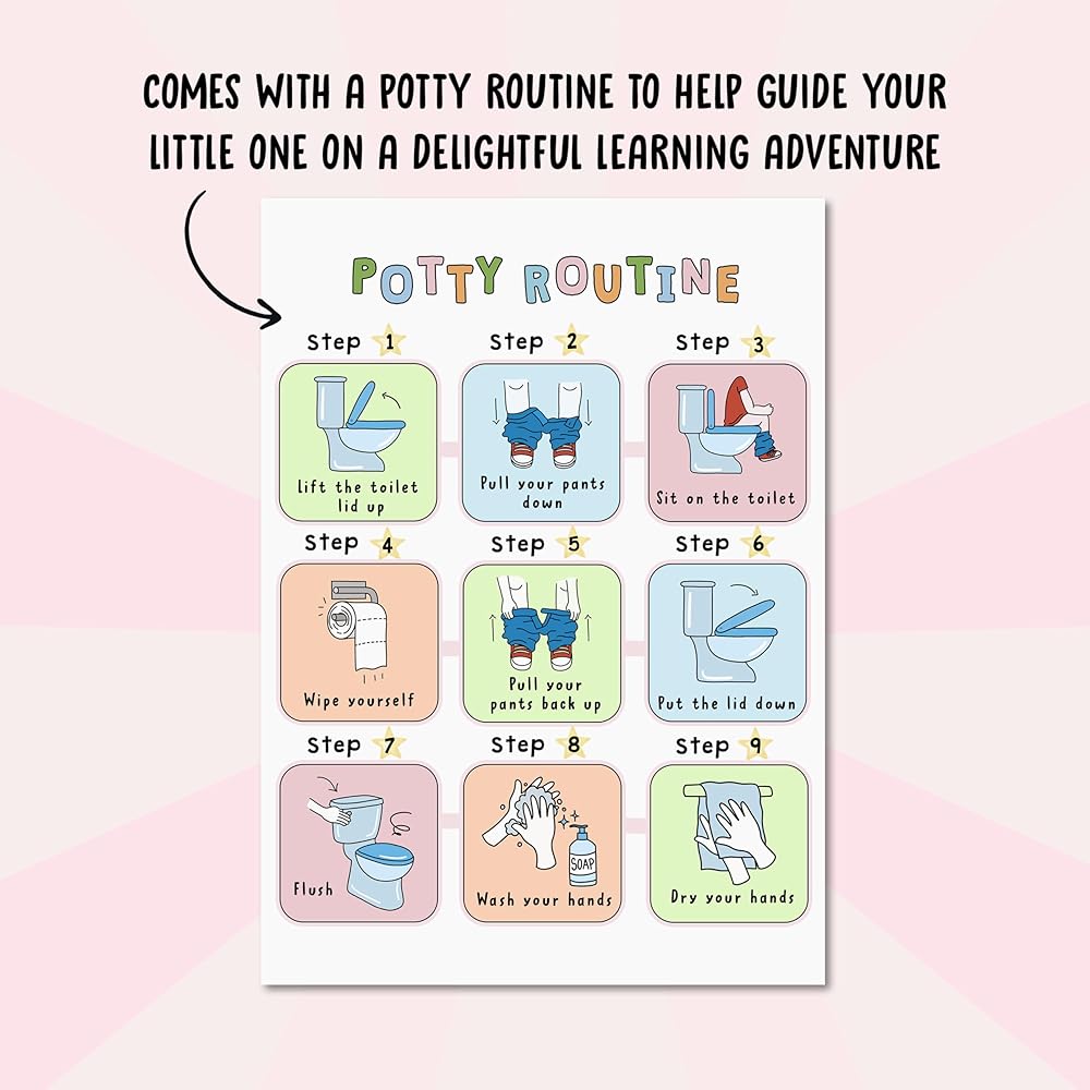 تعليمية وممتعة: الرسوم البيانية لدينا لا تحفز فحسب، بل تثقيف أيضًا. تتضمن الحزمة مخططًا روتينيًا للنونية مليئًا بالنصائح والإرشادات المفيدة للآباء، مما يجعل رحلة التدريب على استخدام الحمام أكثر سلاسة.