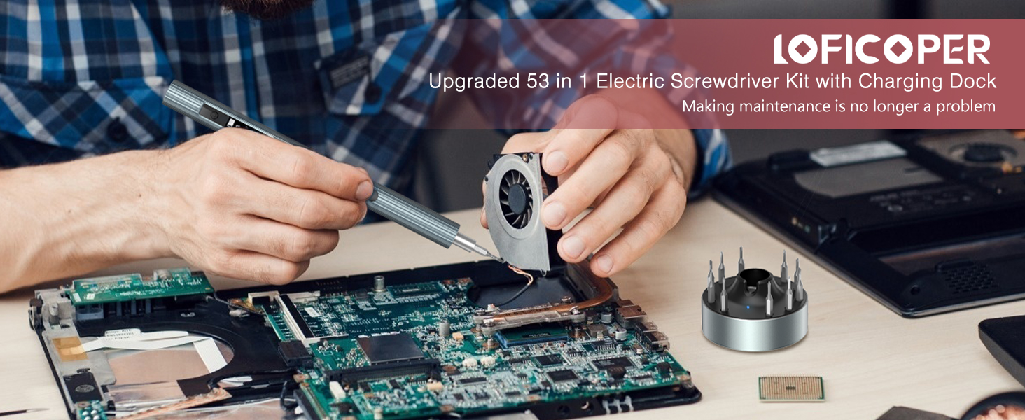 مفك براغي كهربائي لاسلكي من LOFICOPER، مجموعة مفك براغي دقيقة 52 في 1 قابلة لإعادة الشحن، مع قاعدة شحن، عزم دوران 3 تروس، شاشة عرض الطاقة، مصابيح عمل LED، لنظارات الهاتف المحمول