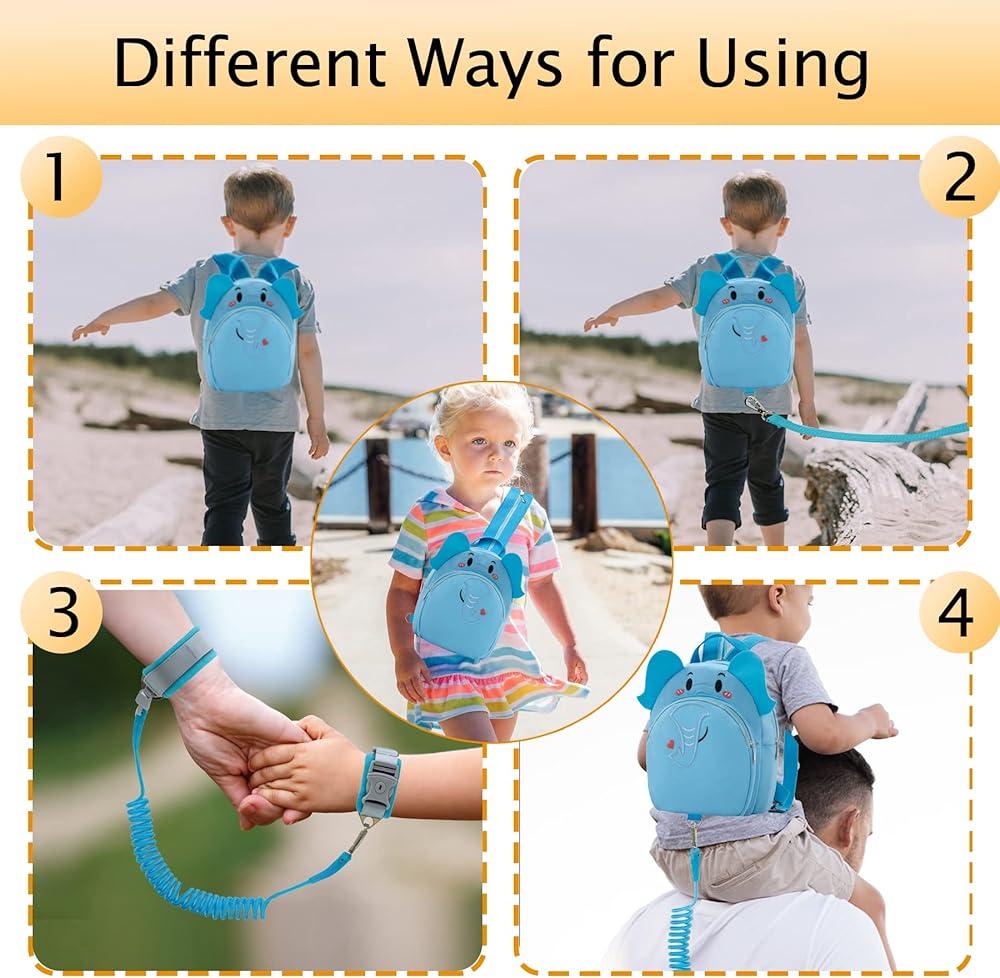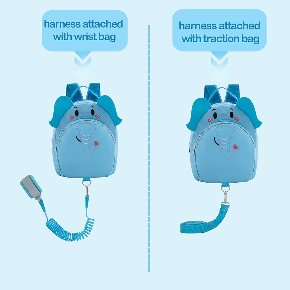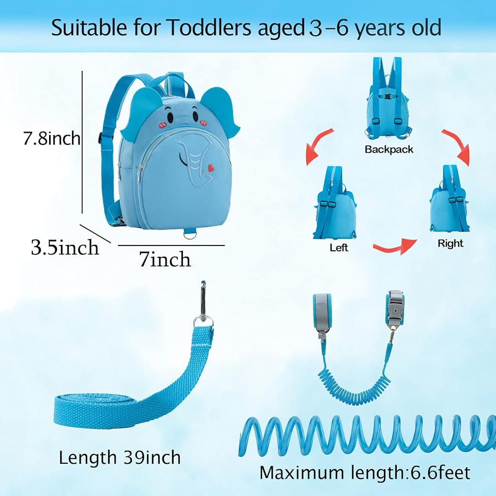 المواد الخام: حقيبة الظهر للأطفال الصغار مصنوعة من نسيج البوليستر، ووصلة المعصم مصنوعة من سلك فولاذي سميك ملفوف بمادة البولي يوريثان الصديقة للبيئة. ويتم تضمين وسائد إسفنجية ناعمة في سوار المعصم.