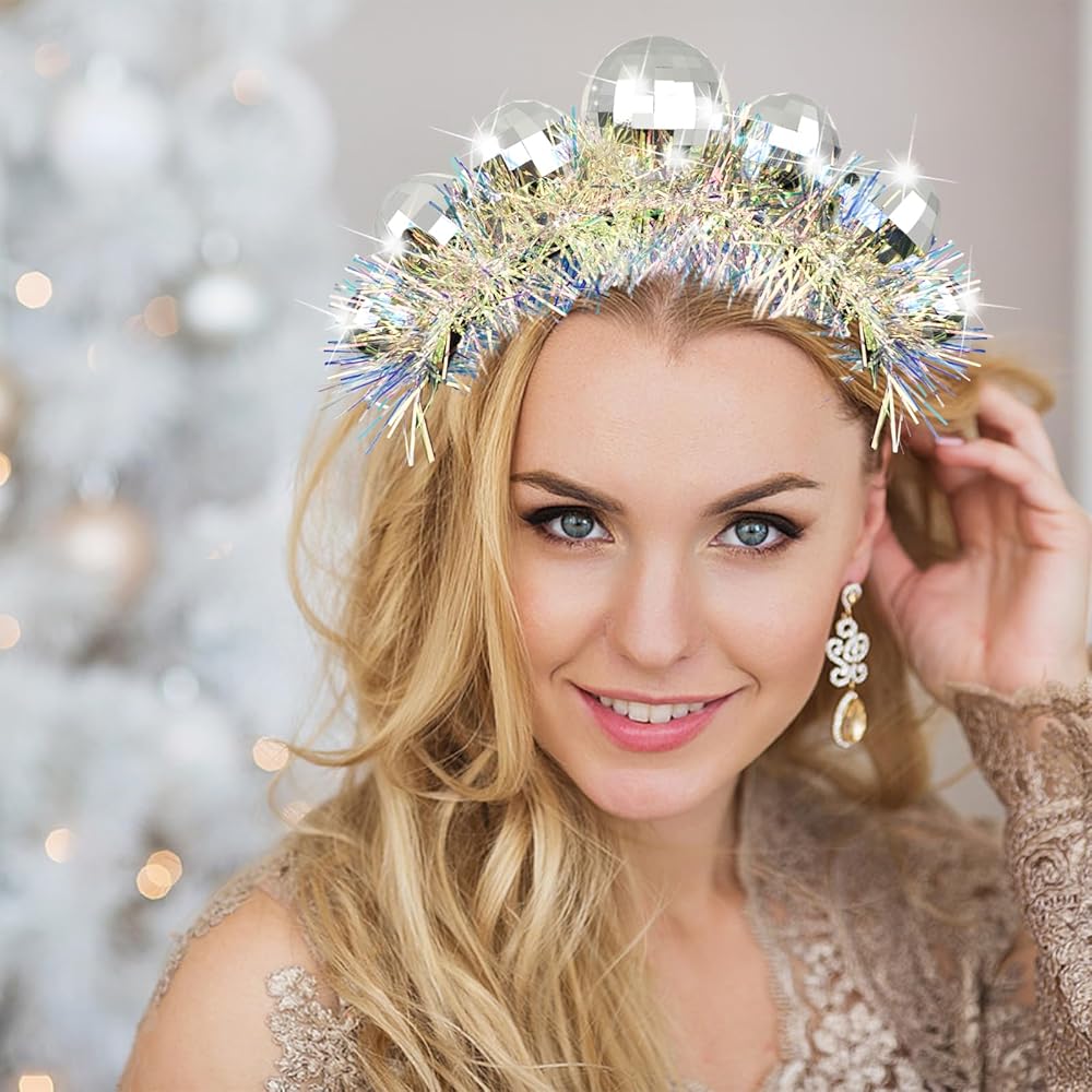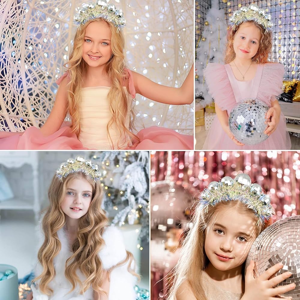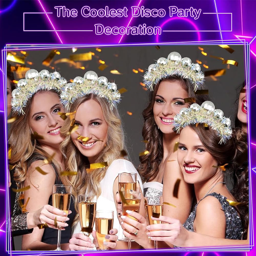 Newmemo ديسكو الكرة عقال الفضة ديسكو عقال خمر ديسكو زي أغطية الرأس ديسكو الكرة رئيس Boppers 70s عصابات مرآة الكرة عقال اكسسوارات الشعر للنساء فتاة ديسكو حزب Bday ديكور NYE