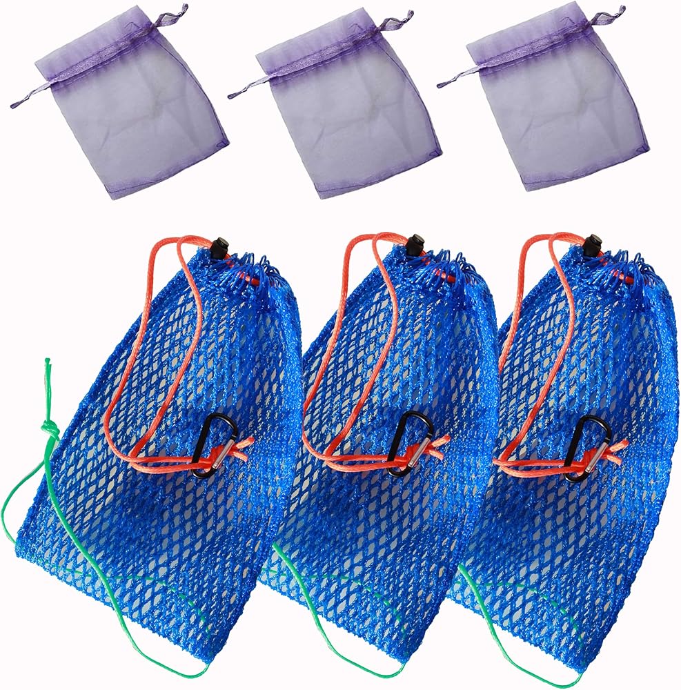 BRILISLE أكياس طعم مصيدة سرطان البحر 6 قطع 12 قطعة مجموعة مع خزانة غير القابل للصدأ لسرطان البحر وسمك السلور وجراد البحر وأكياس طعم سرطان البحر وأواني جراد البحر وأكياس الطعم