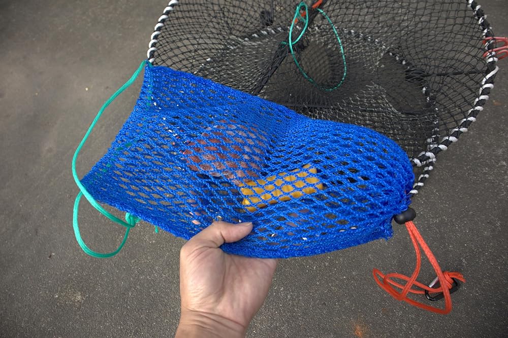 سهلة الاستخدام: مع عملية تركيب سهلة، تم تصميم كيس الطعم الشبكي المصنوع من النايلون من أجل حشو وإغلاق خالي من المتاعب. الطول الإضافي للحبل وأقفال سلك سدادة التبديل تجعل من السهل إغلاق فتحة الحقيبة، مما يوفر المرونة للصيد في الهواء الطلق وصيد السلطعون.