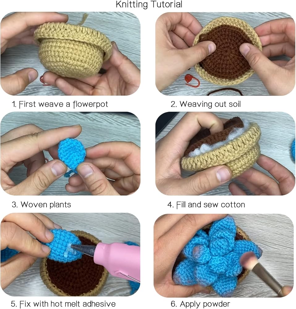 Step-by-Step video:We are equipped with detailed teaching videos and simple operation instructions,you can easily learn the basic knitting techniques and make these two small potted plants