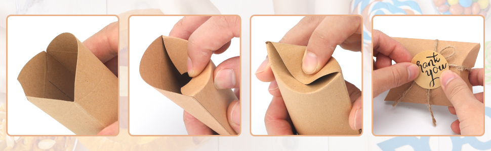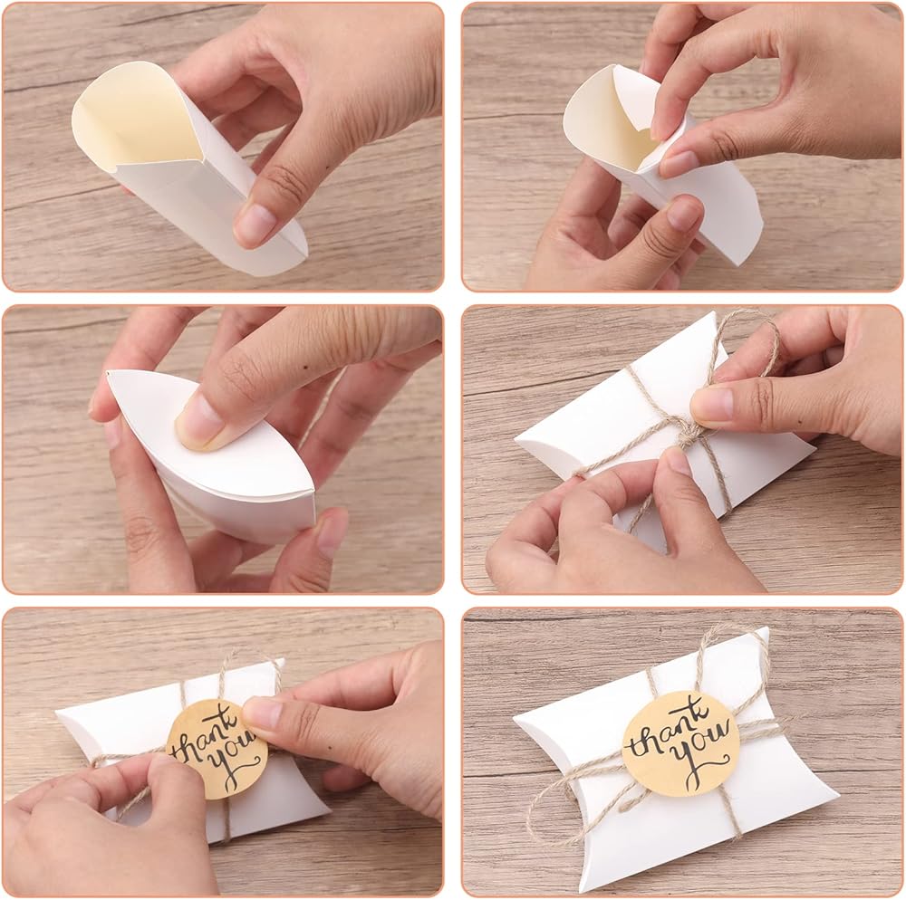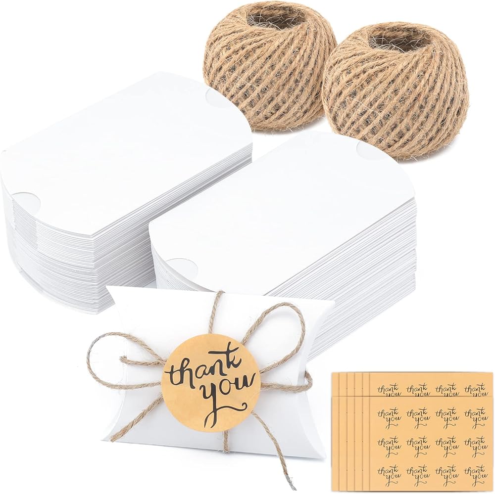 【عبوة صناديق الوسائد】يوجد 100 قطعة من صناديق الوسائد و2 لفافة من خيوط الجوت و120 قطعة من ملصقات الشكر في العبوة، وهي كافية لتلبية استخداماتك اليومية والحفلات.