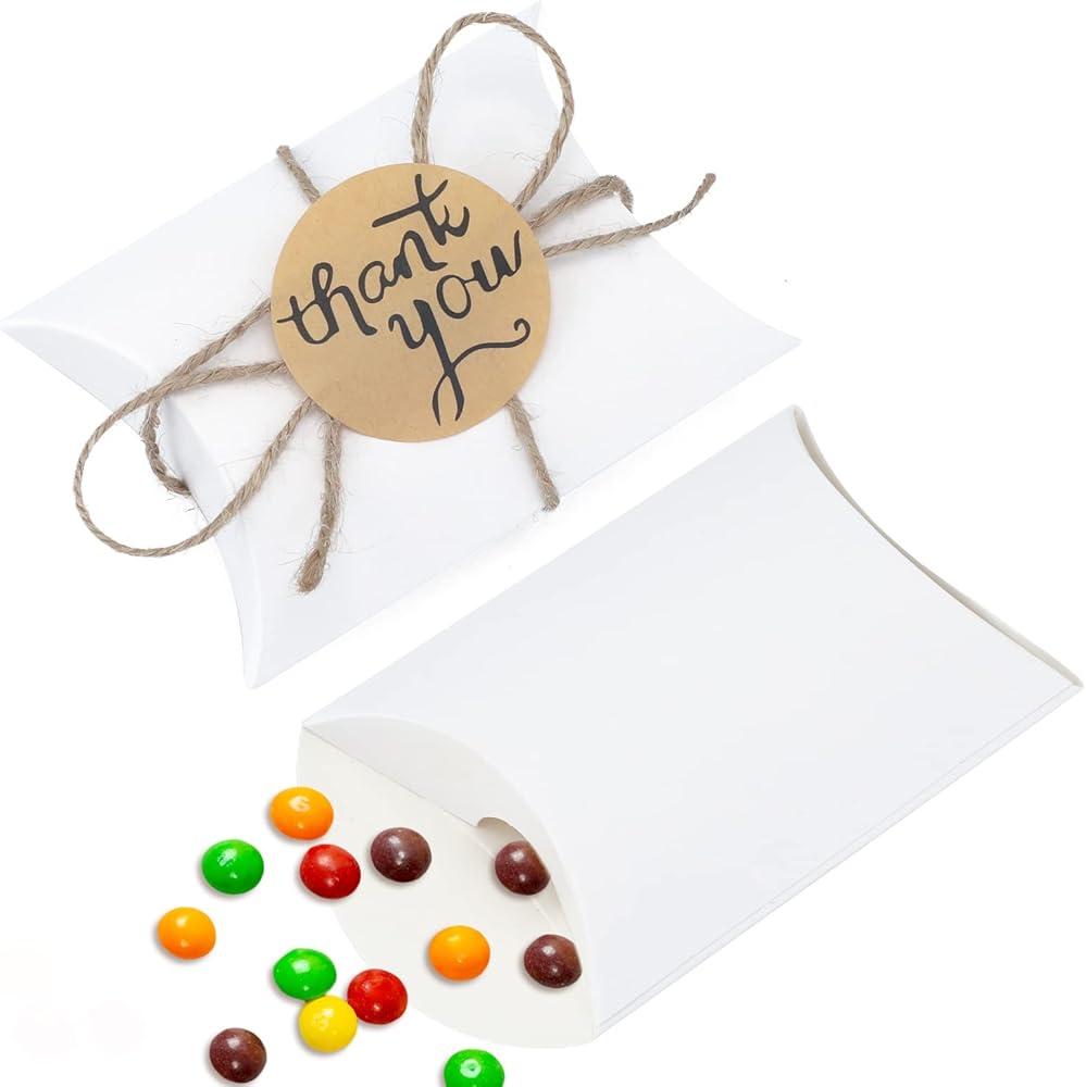 100 قطعة من صناديق الهدايا البيضاء للحفلات من jijAcraft، وصناديق وسائد صغيرة، وصناديق جودي مع سلسلة وملصقات شكر، وصناديق هدايا ورقية لحفلات الزفاف، وحفلات أعياد الميلاد، والتخرج، وتزيين حمام الطفل.