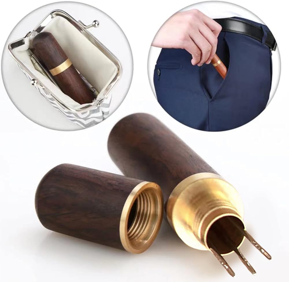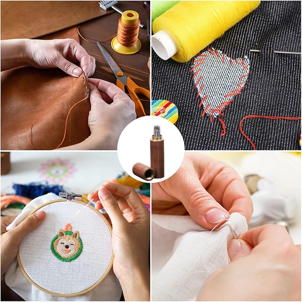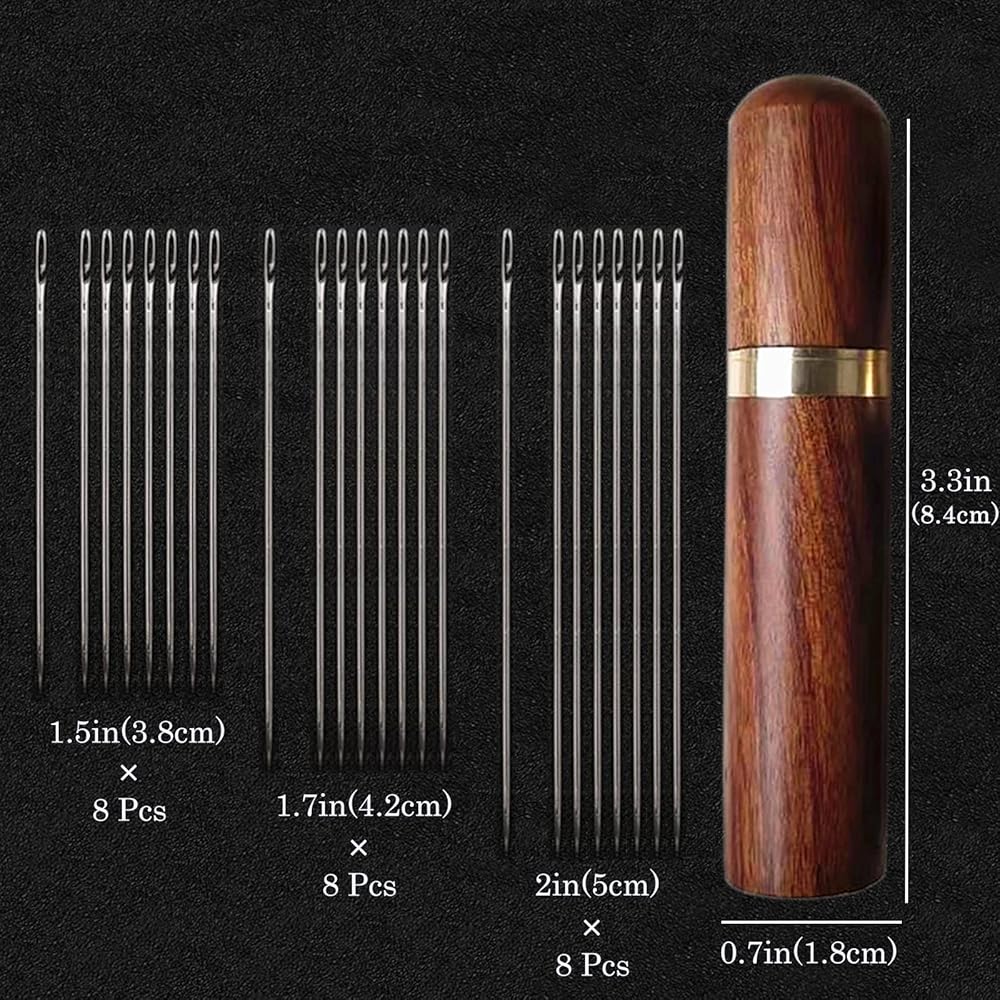 سهلة التخزين: إبرة الخياطة الخاصة بنا مجهزة بأنبوب تخزين الإبرة مصنوع من الخشب والنحاس. لا يمكنها فقط منع فقدان الإبر، بل يمكنها أيضًا حملها معك.