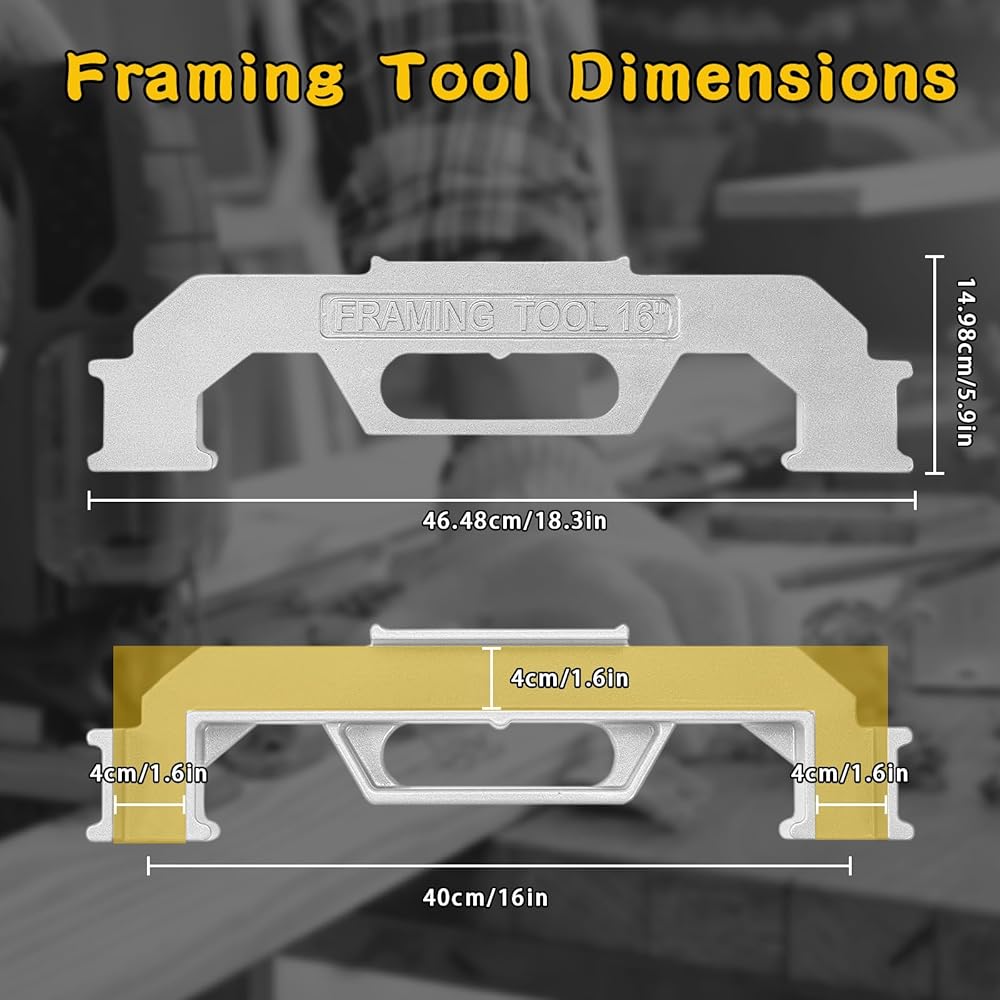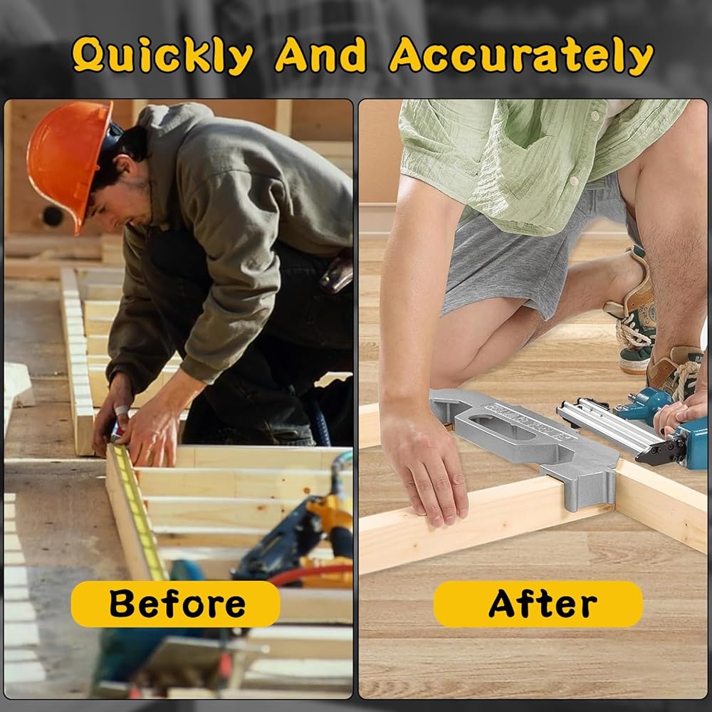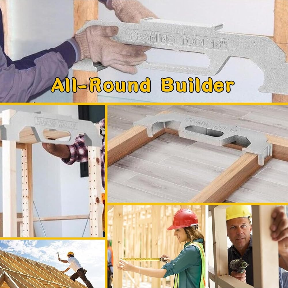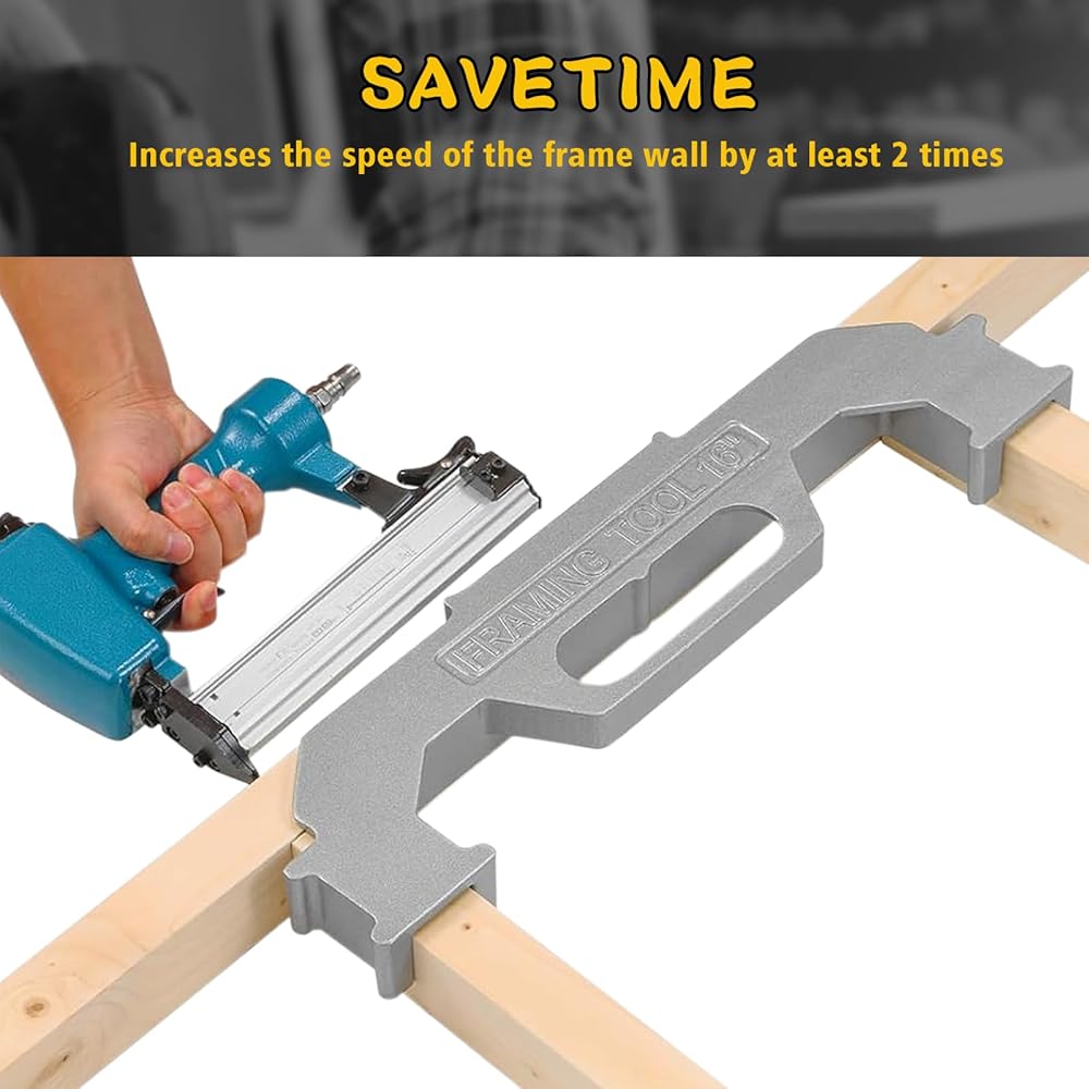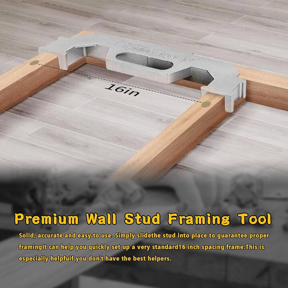 • تصميم في المنتصف: تم تصميم الأداة خصيصًا لتباعد المسامير مقاس 16 بوصة في المنتصف، وهو معيار في البناء. تعمل هذه الميزة على تبسيط عملية التأطير، مما يجعلها فعالة ودقيقة، سواء كنت منشئًا محترفًا أو متحمسًا للأعمال اليدوية.