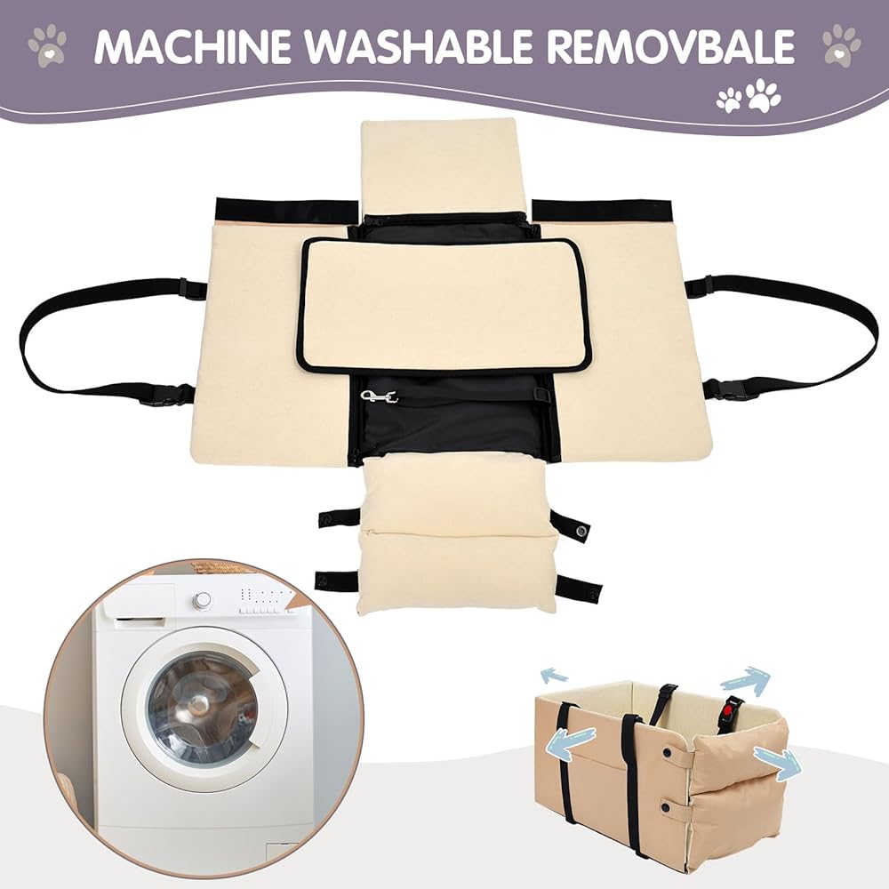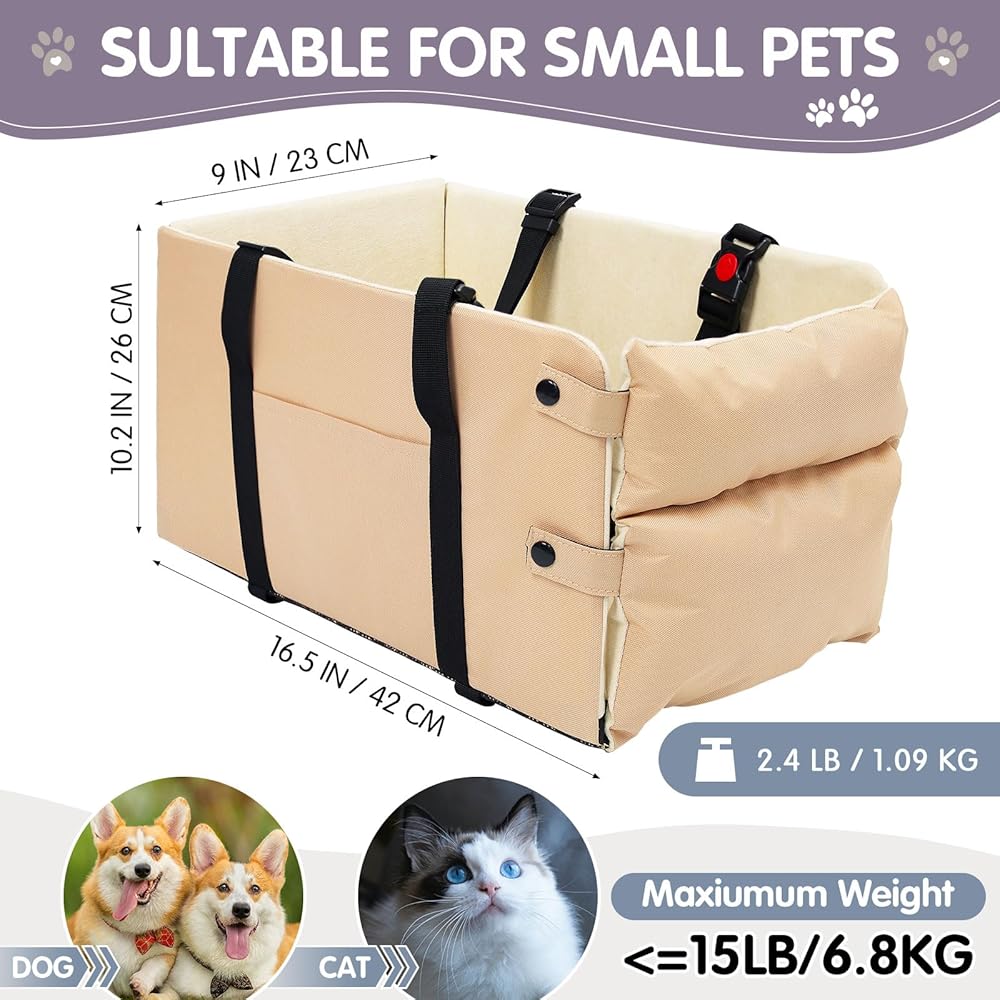 الحجم وقابل للإزالة - ارتفاع مقعد الكلب الصغير: 9 بوصة/23 سم، العرض: 10.2 بوصة/26 سم، الطول: 16.5 بوصة/42 سم والوزن: 2.4 رطل/1.09 كجم، مناسب للحيوانات الأليفة التي تزن أقل من 15 رطل/6.8 كجم. قم بإزالة فواصل مقعد الجرو الصغير قبل الغسيل، باستثناء الفاصل السفلي