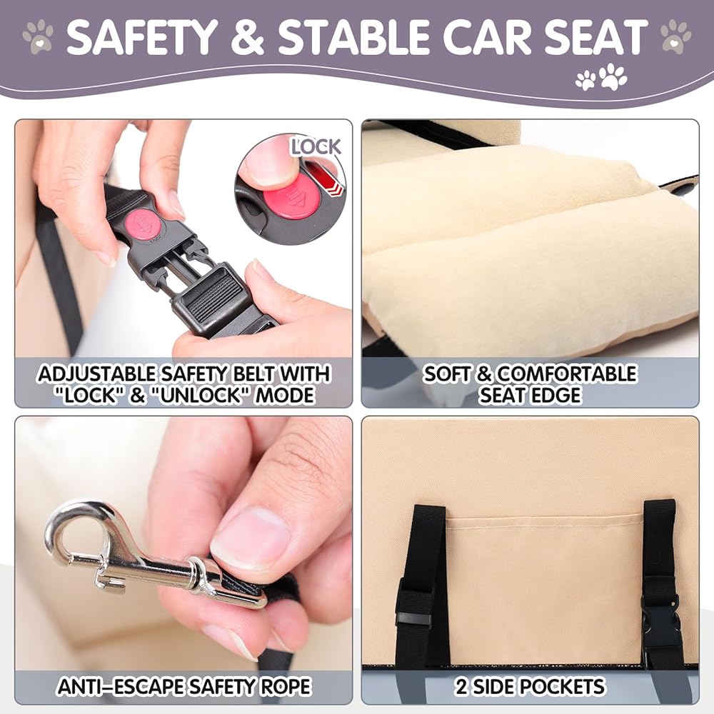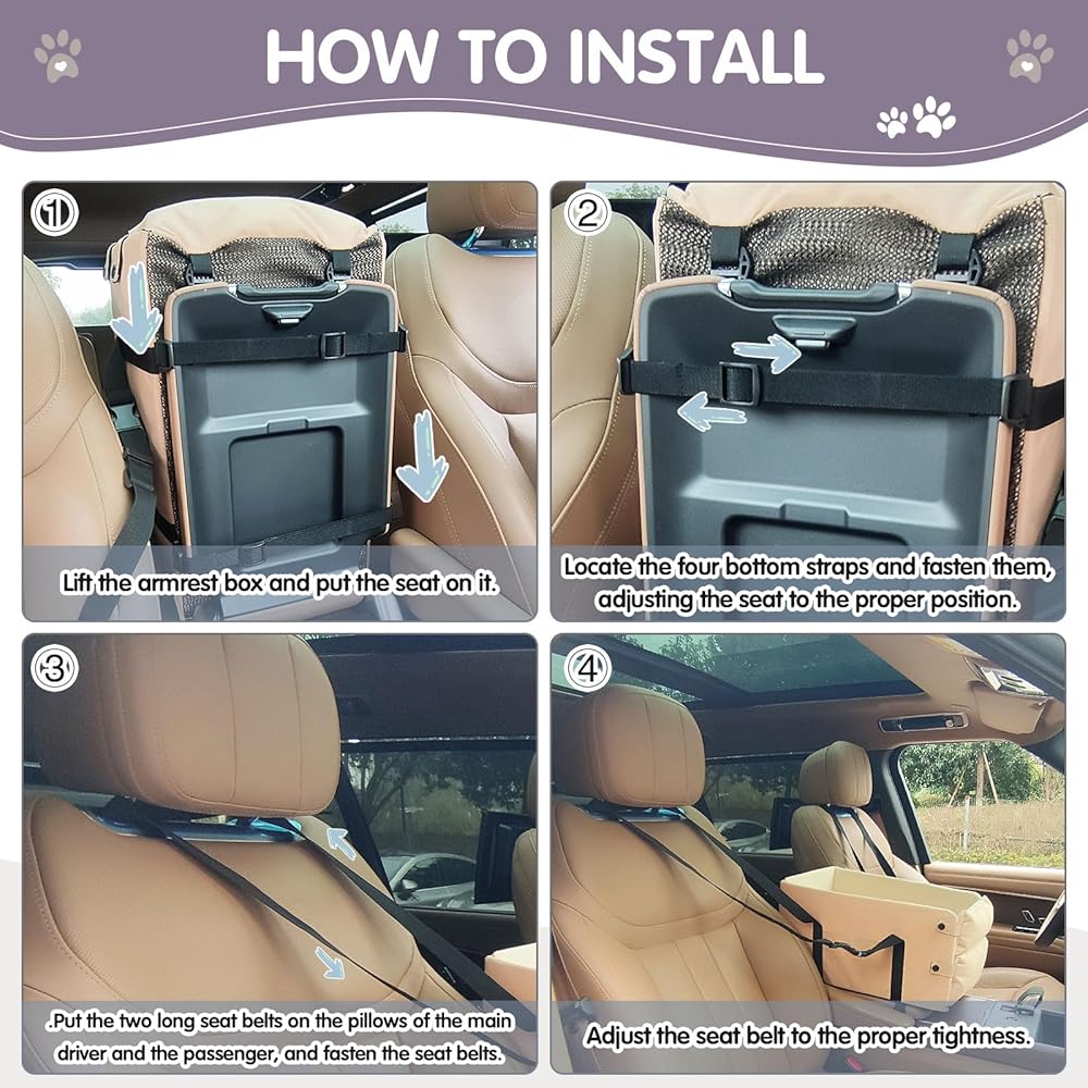 آمنة ومستقرة للغاية - تأتي مقاعد سيارة الكلاب PJDH مزودة بأشرطة وأحزمة قابلة للتعديل يمكن ربطها بطوق الكلب وتثبيتها في مقعد الكونسول المركزي للسيارة أو المقعد الأمامي. المادة الخارجية لمقعد الكلب مصنوعة من قماش أكسفورد 600D عالي الكثافة، وهو سميك للغاية وأكثر متانة ومقاومة للخدش من مقعد السيارة العادي المصنوع من القطن والجلد للحيوانات الأليفة.